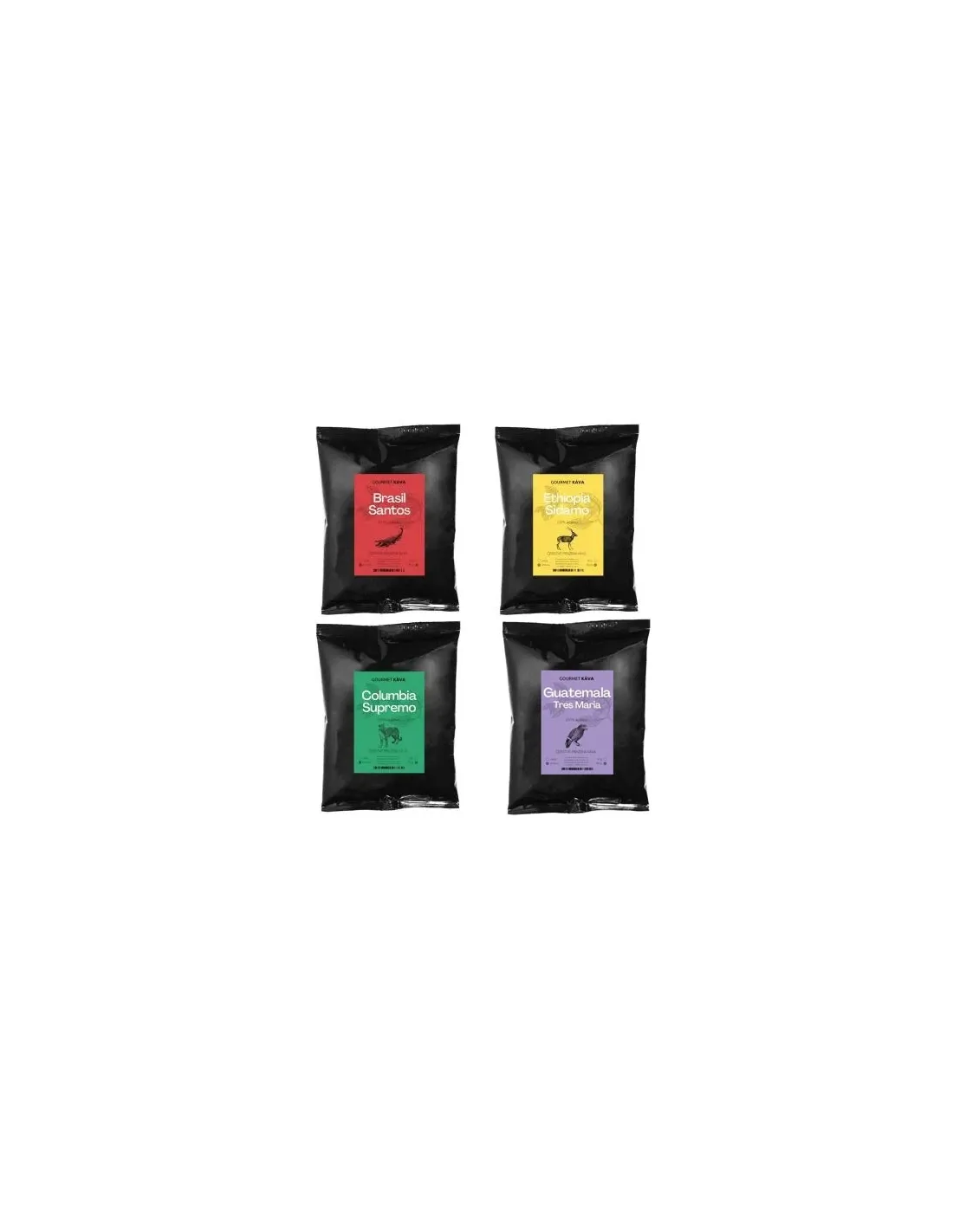 Ez a 4 kávé ideális keresztmetszete kávékínálatunknak, kezdve a legfinomabbakkal. Brazília Santosa tökéletesen kiegyensúlyozott Guatemala Trés Maria a Colombia Supremo, a kellemesen gyümölcsös kávéhoz Etiópia Sidamo.