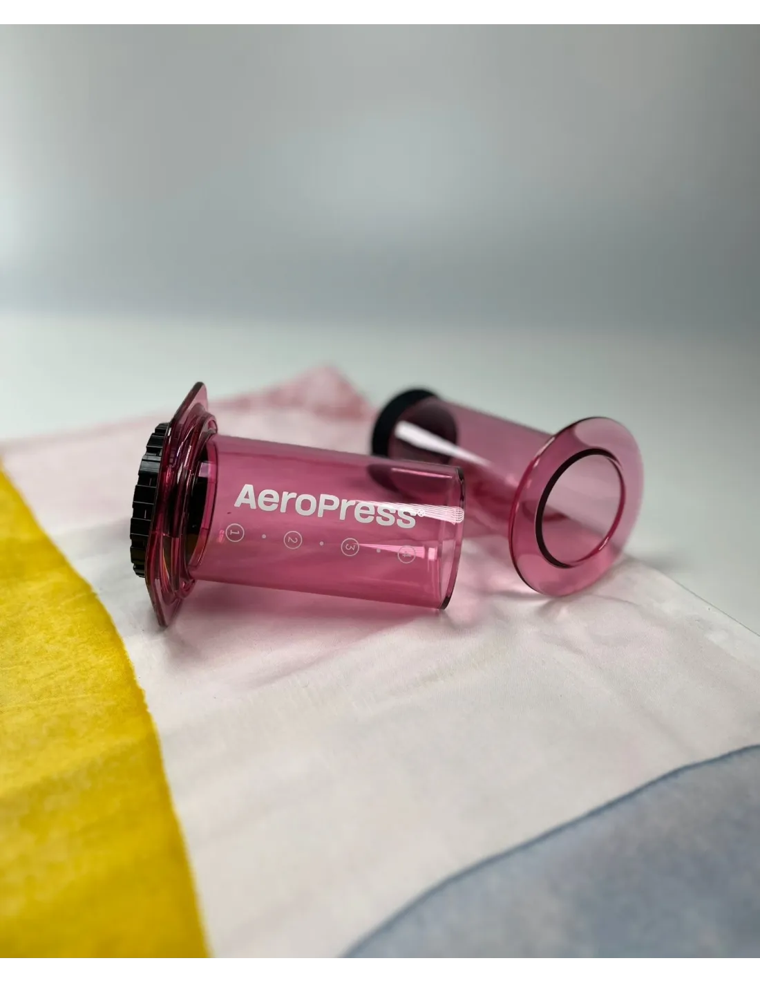 Mivel nagyszámú Aeropress-t forgalmazunk, mindig megtalálja az utoljára gyártott modellt. jelenleg ez az Aeropress rózsaszínben készült. Tehát ha például egy második darabot tervez vásárolni otthonába, ajándékot szeretne szeretteinek, vagy csak meg akarja különböztetni magát, akkor ez a színválaszték megfelelő Önnek.