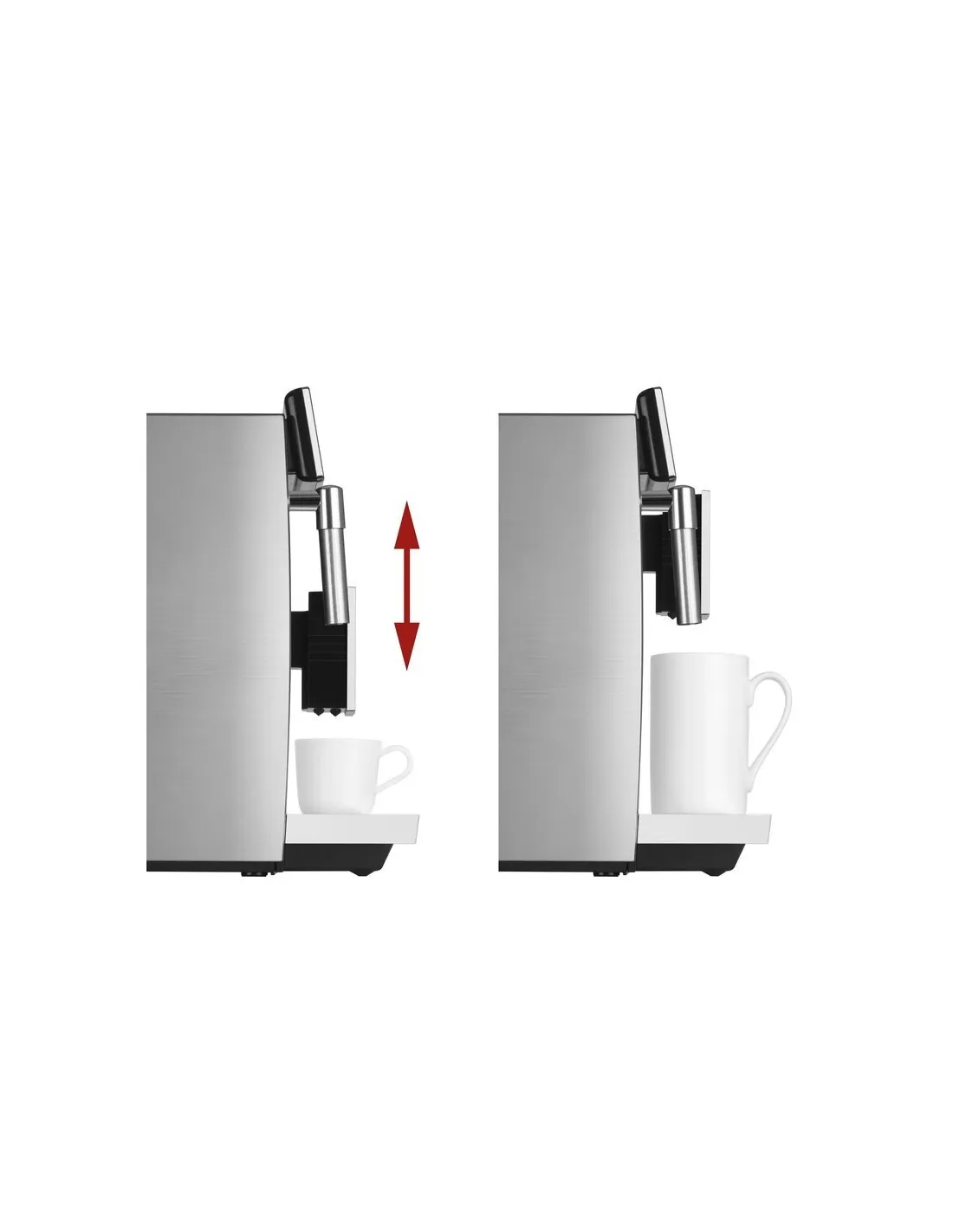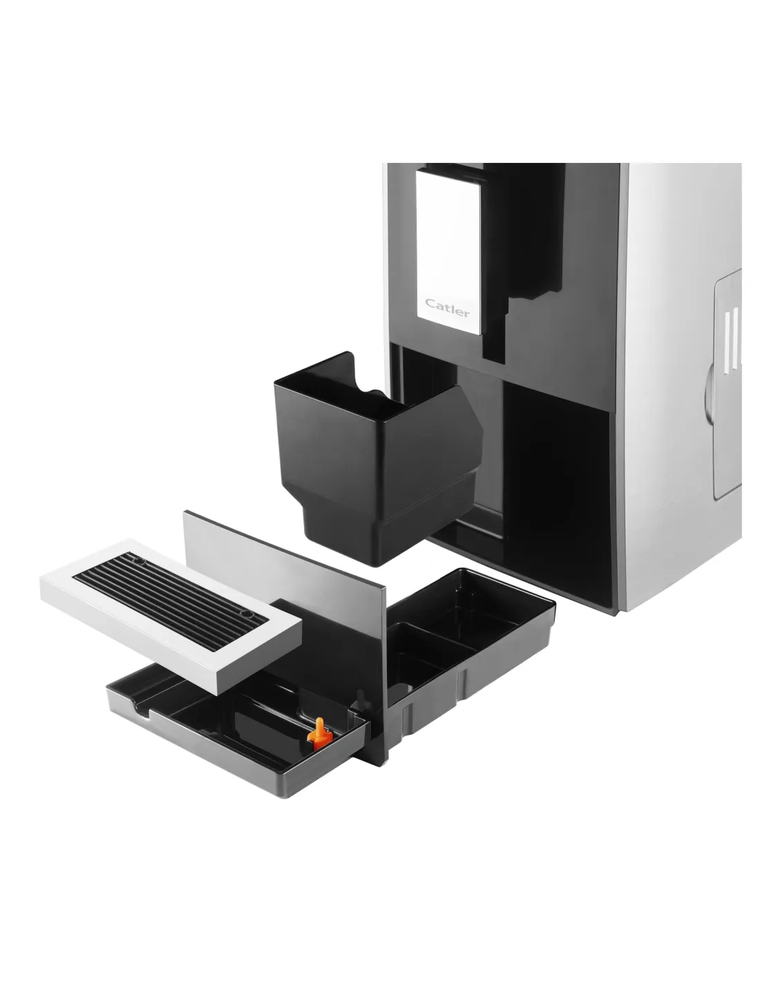 Ha gyorsan, kényelmesen és felesleges rendetlenség nélkül szeretne nagyszerű kávét élvezni, a Catler Cubisto automata eszpresszógép a kézenfekvő választás. A 19 bar nyomásnak és az öt őrlési fokozattal rendelkező rozsdamentes acélból készült babdarálónak köszönhetően pontosan az Ön ízlésének megfelelő eszpresszót vagy lungót készít.