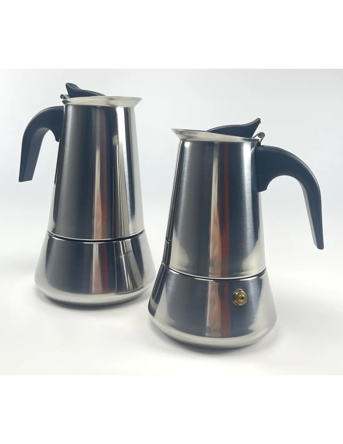 Rozsdamentes acél Moka kanna Kaffia 6 csésze mocha kávé elkészítéséhez. Egy egyszerű, az eszpresszóhoz hasonló elkészítési mód, de töredék áron. Kapacitás: kb. 302,2 ml. Indukciós főzőlapokhoz is alkalmas! CSOMAGOLÁS NÉLKÜL- KEDVEZMÉNY