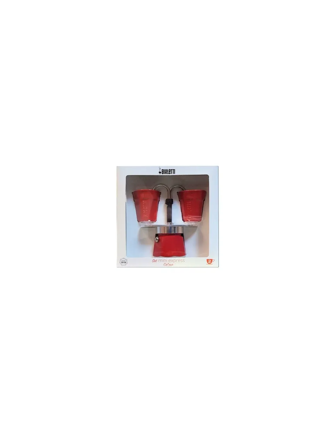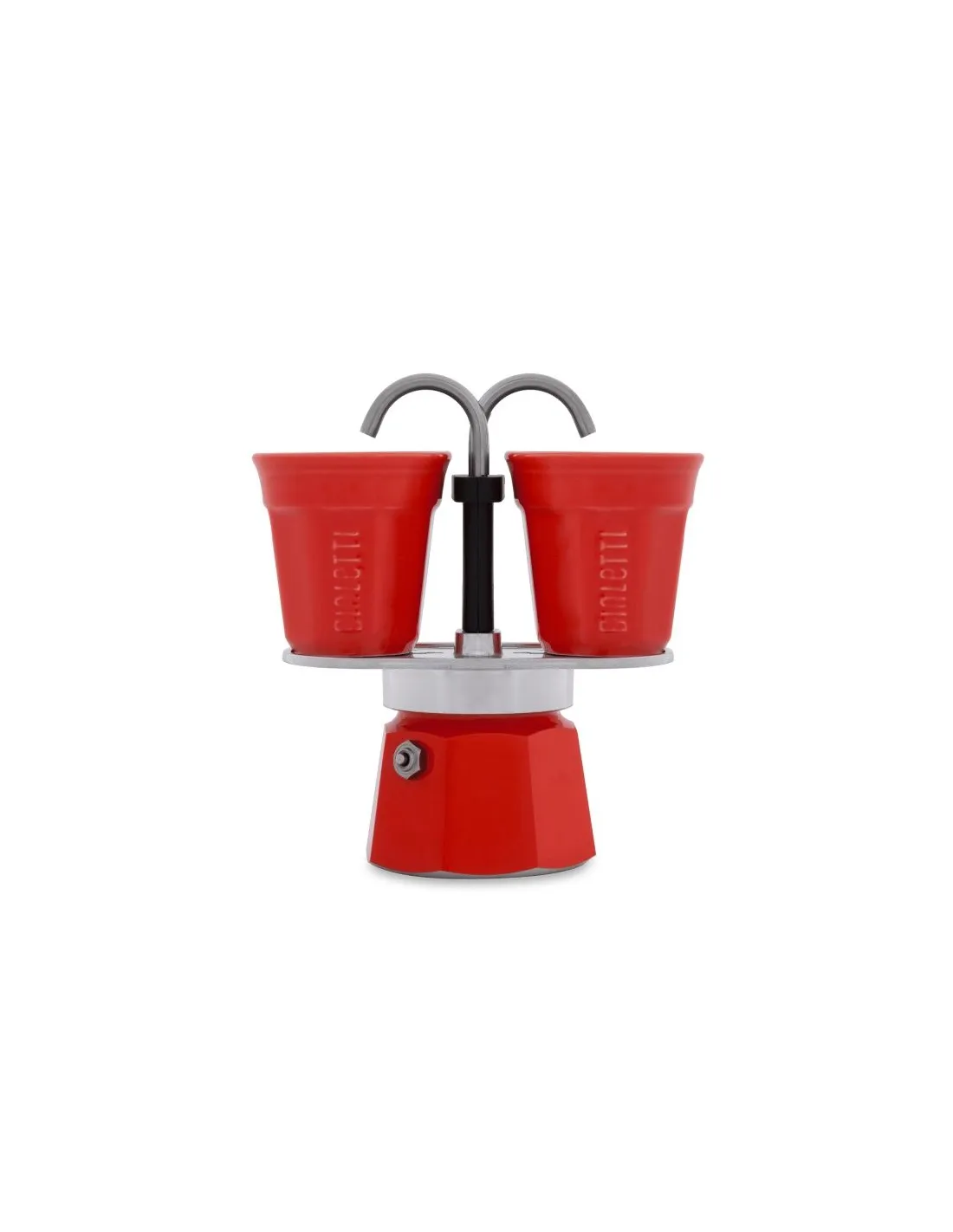 Az innovatív és atipikus Bialetti Mini Express mokakanna egyszerre 2 csésze kávét készít. A klasszikus mokafőzőkkel ellentétben a kávé közvetlenül az előkészített piros csészékbe folyik.