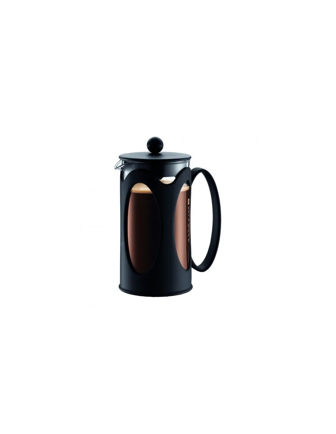 A fényűző, bársonyos fekete műanyag Bodum Kenya French press 1000 ml űrtartalommal finom, friss kávé elkészítéséhez.