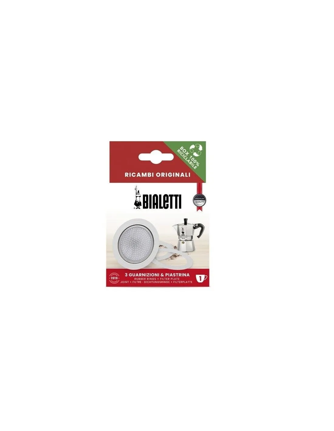 A csomag tartalmaz 3x tartalék gumitömítést a Bialetti alumínium mokkáskannákhoz 1 csésze méretben és 1x tartalék alumínium szűrőt.