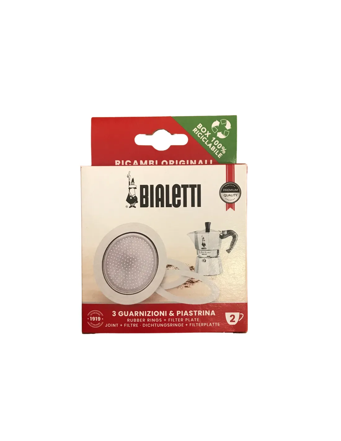 A csomag tartalmaz 3x tartalék gumitömítést a Bialetti alumínium mokkáskannákhoz 2 csészényi méretben és 1x tartalék alumínium szűrőt.