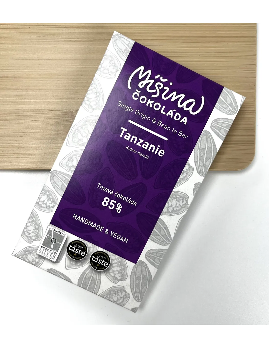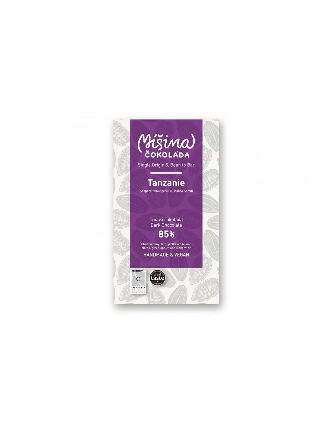 85%-osétcsokoládé, magas tanzániai bio kakaóbabtartalommal. Sima és vajas, alma és cseresznye jegyekkel.