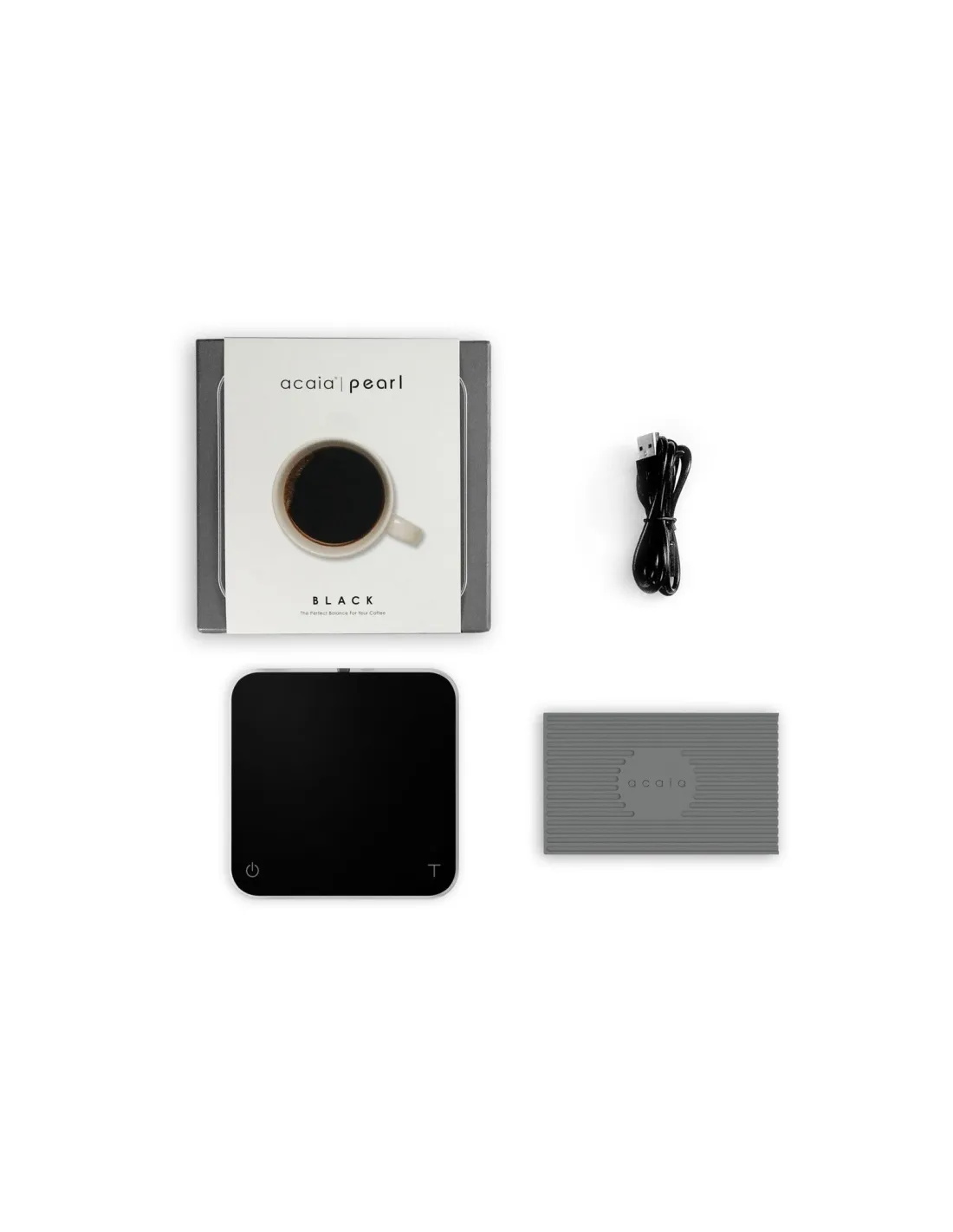 Acaia Pearl mérleg, USB-C kábel, gumi védőbetét.