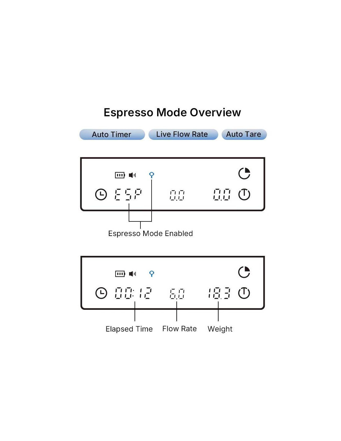 A mérleg három dedikált üzemmódot kínál - Regular, Pour-Over és Espresso. A Regular és a Pour-Over üzemmódokban képes automatikusan , valós időben kiszámítani a kávé-víz arányt, így sokkal könnyebbé válik a receptek követése. Espresso üzemmódban értékelni fogja az automatikus időzítő indítását és a pontos extrakcióvezérlést.