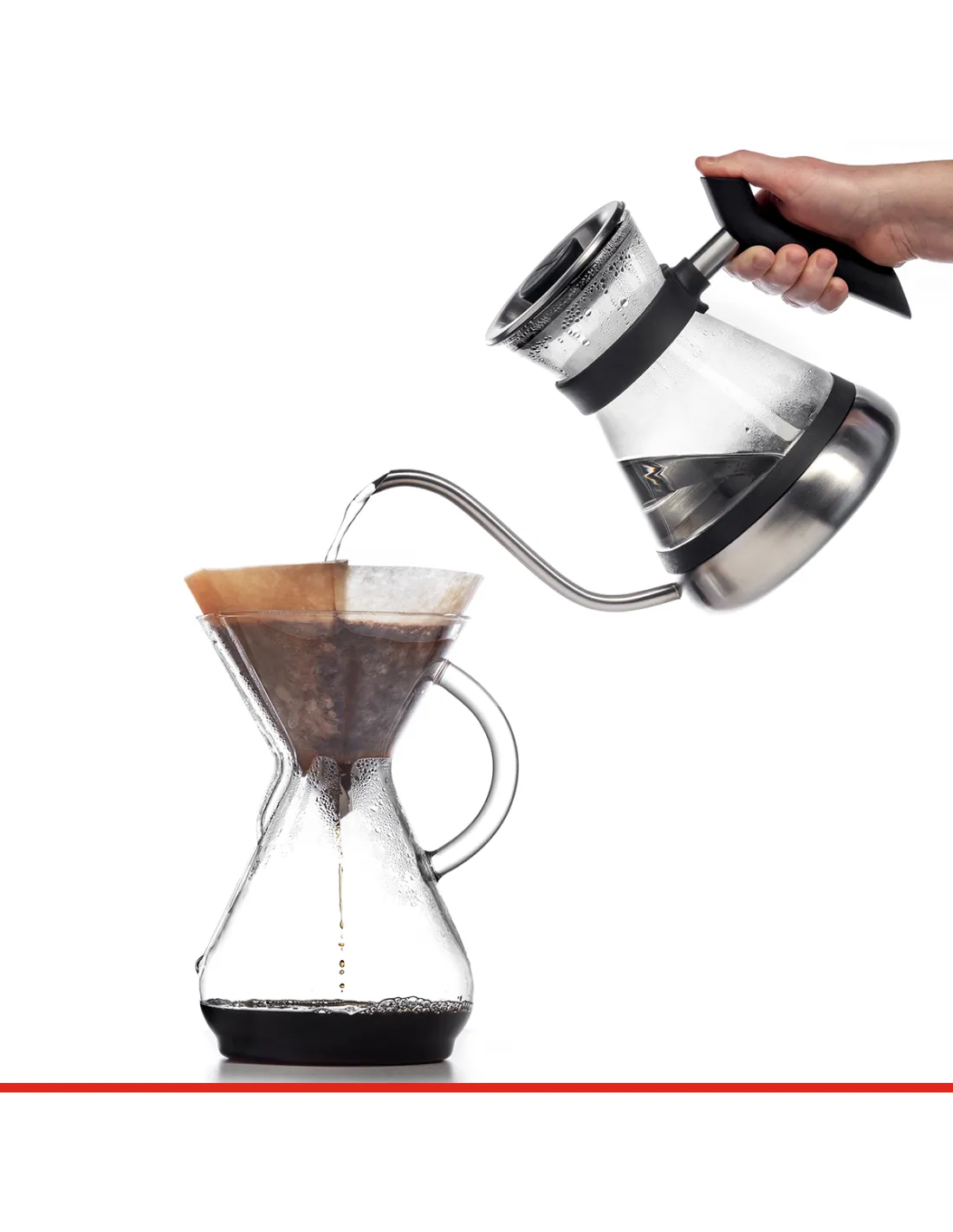 Egyedi üvegforraló keskeny kifolyócsővel, amely alkalmas filteres kávéhoz. A vízforraló indukciós fűtéssel működik. Kapacitás: 1,2 l.