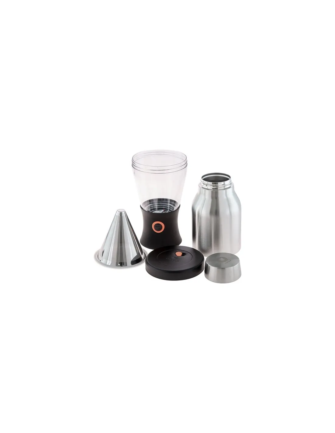 A design nemcsak szemet gyönyörködtető, hanem praktikus is. A Tritanból készült felső ( gőzölő ) tartályban szabályozhatja a maceráció mértékét. Az alsó, szigetelt tartályba történő szűrés után magával viheti az italát egy utazásra, és még néhány óra elteltével is megfelelő hőmérsékleten tartja az it alt.