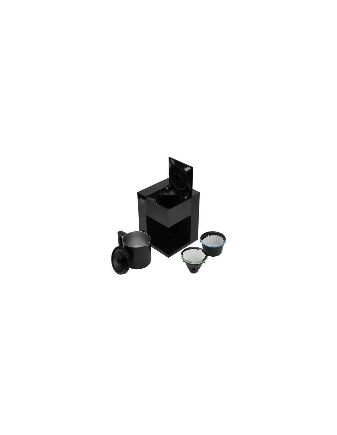 A csomag tartalma: kávéfőző, vízforraló, víztartály, szűrők (15 kúpos szűrő és 15 lapos aljú szűrő), 2x szűrőkosár (kúpos és lapos aljú).