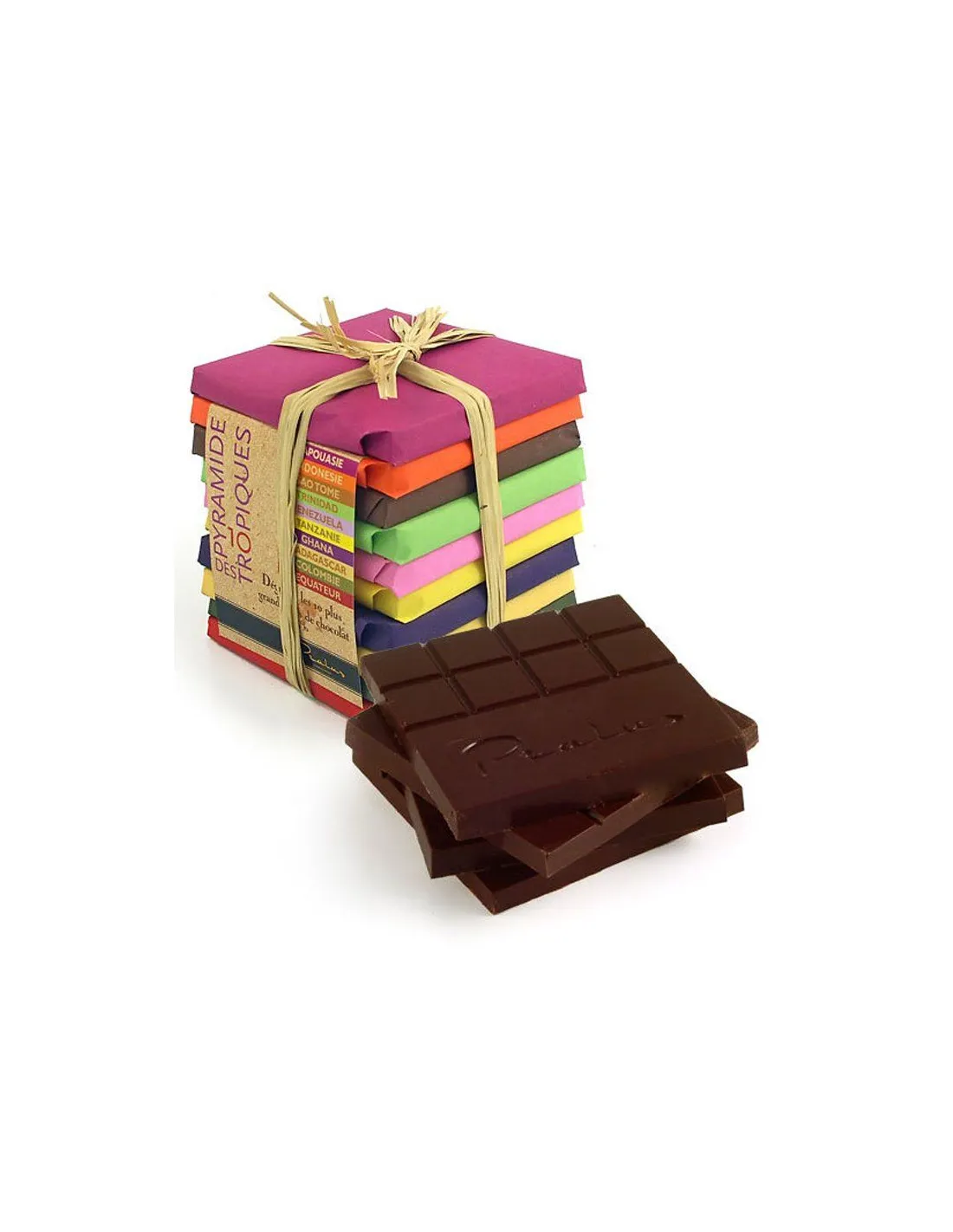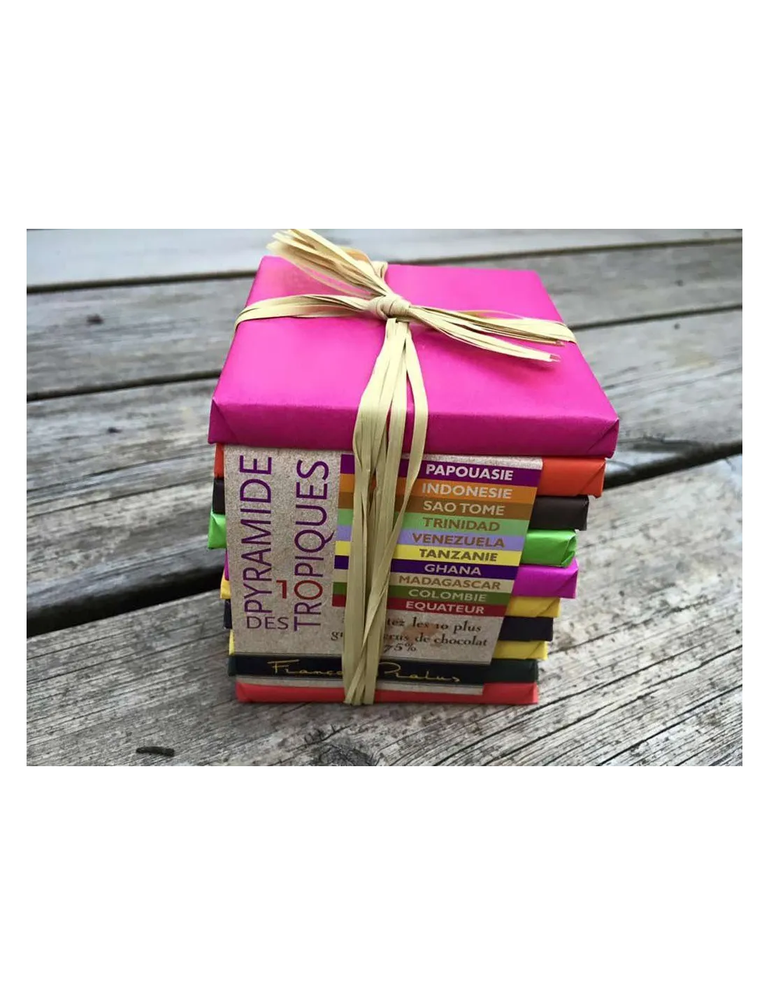 Tegyen egy csokoládés utazást a világ körül. A kóstoló készlet 10 féle, egyféle, 75%-os Francois Pralus csokoládét tartalmaz. Ebben a kóstoló készletben élvezheti a különböző kakaóbabfajták (Criollo, Trinitario és Forastero) közötti különbségeket, és összehasonlíthatja a világ különböző régióiból származó csokoládék ízét.