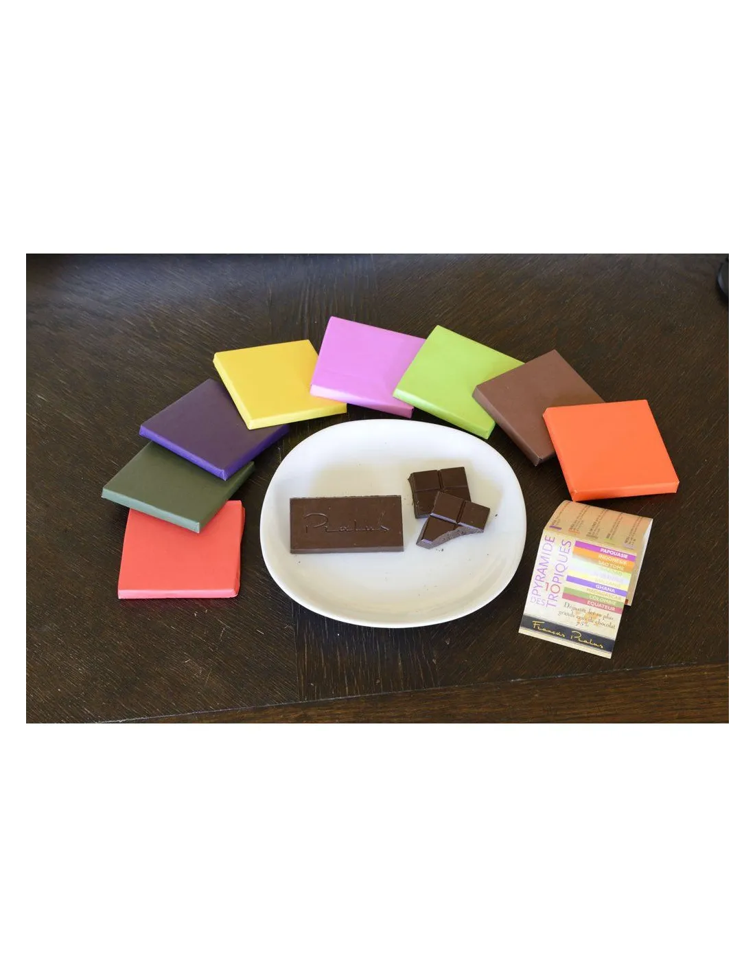 Kóstoló készlet a világ különböző régióiból származó 75%-os Francois Pralus csokoládékból.