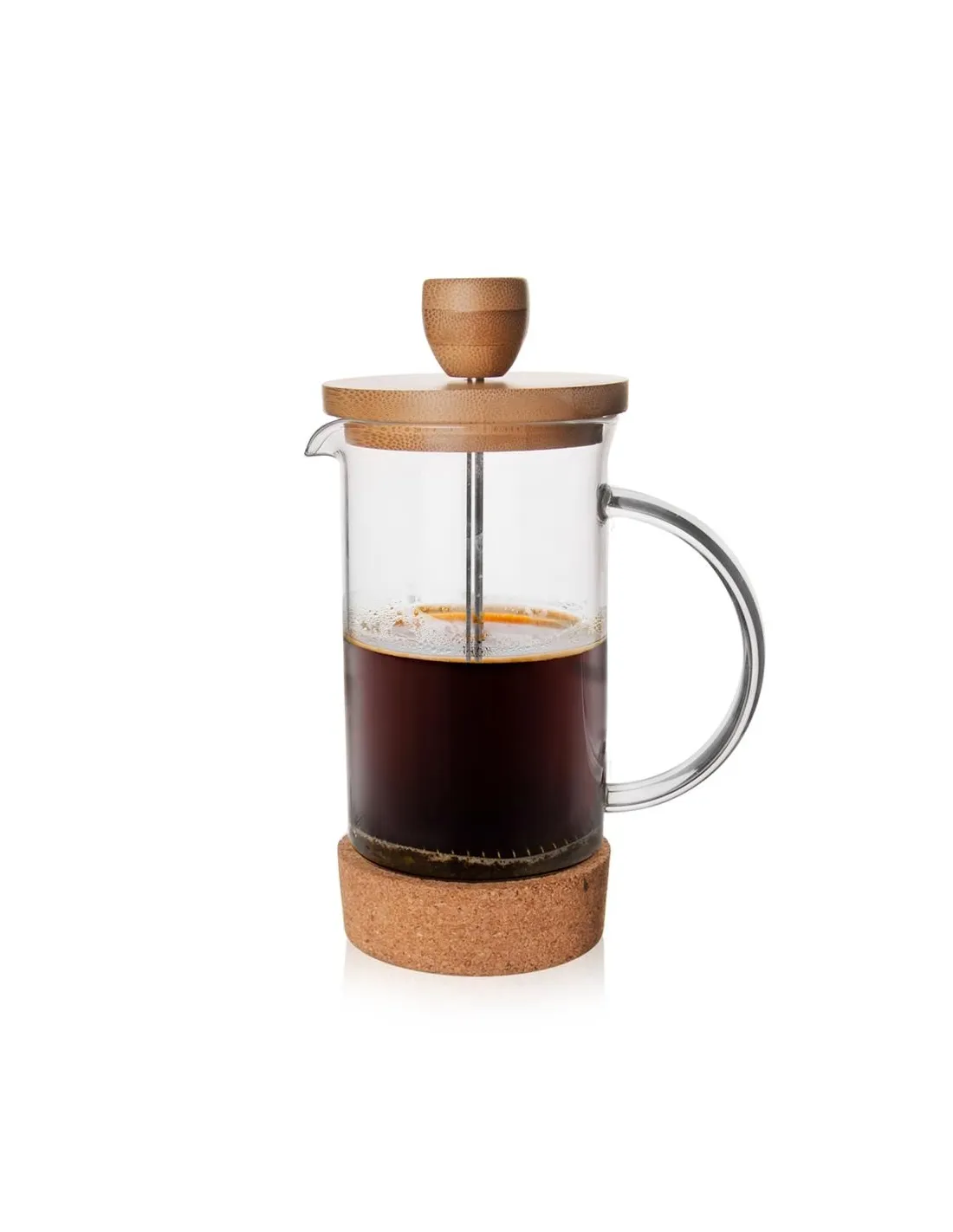 Frenchpress teáskanna bambusz és parafa elemekkel, 1000 ml térfogattal a filterkávé hibátlan, testes elkészítéséhez.