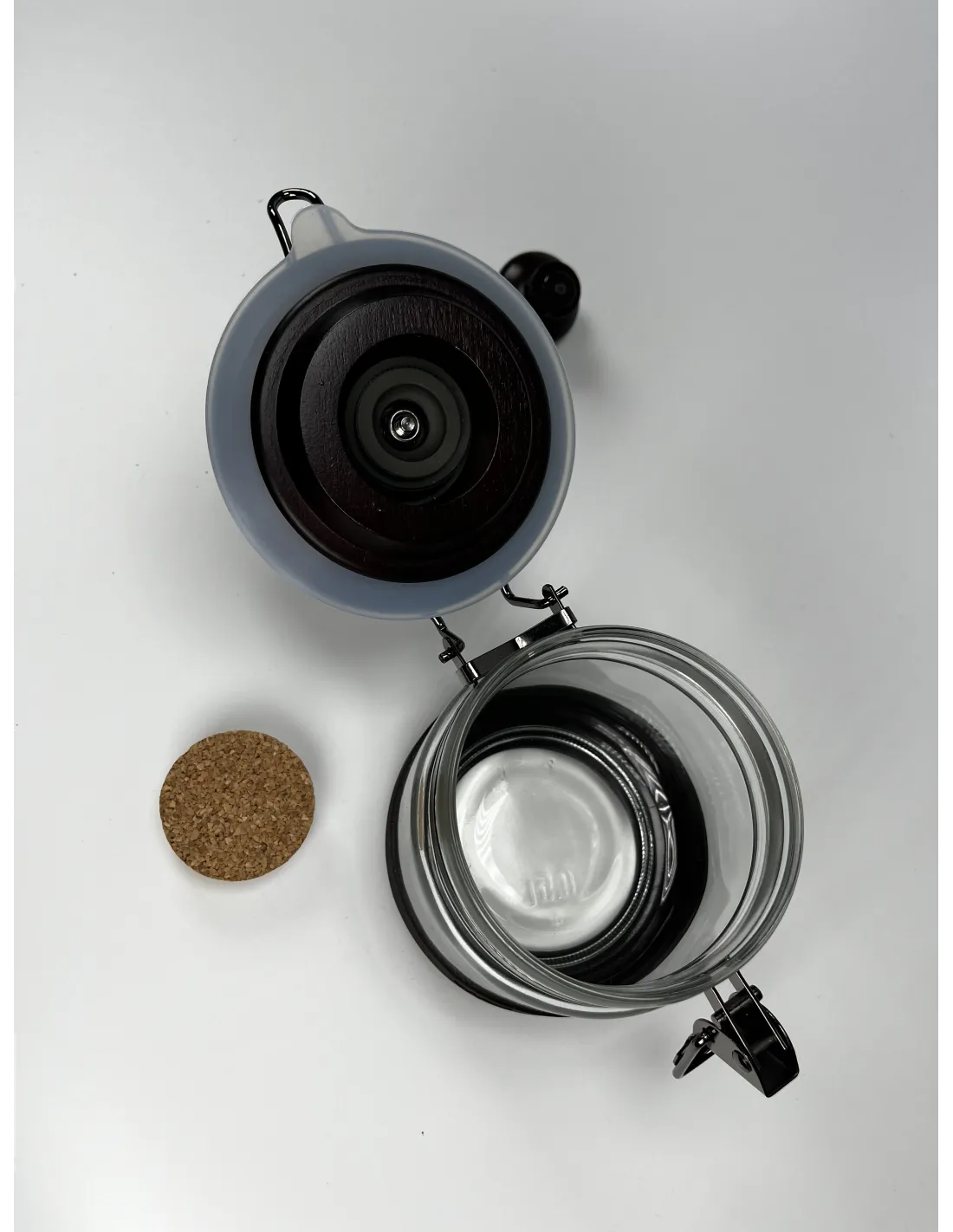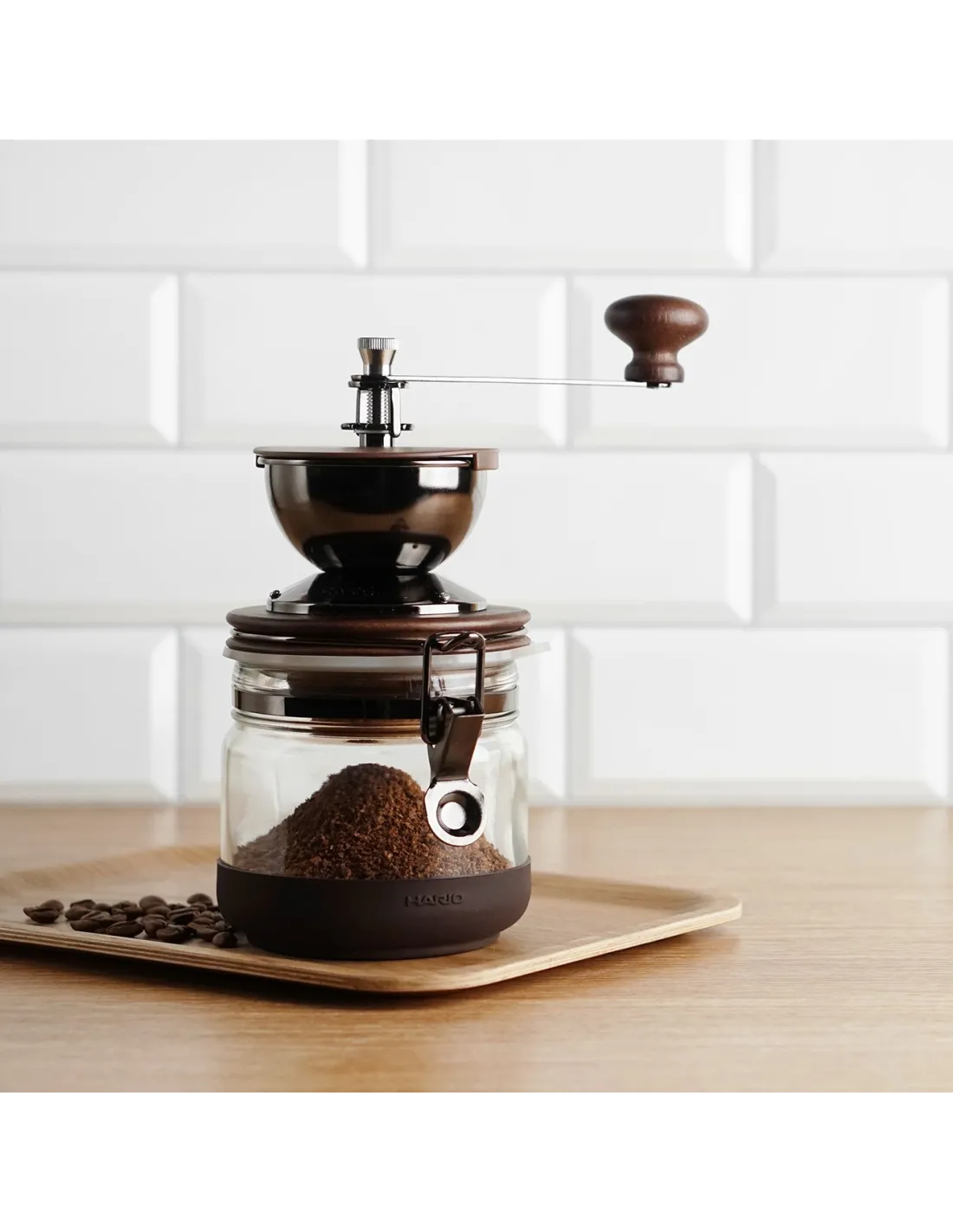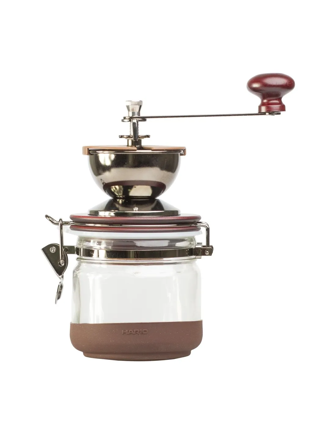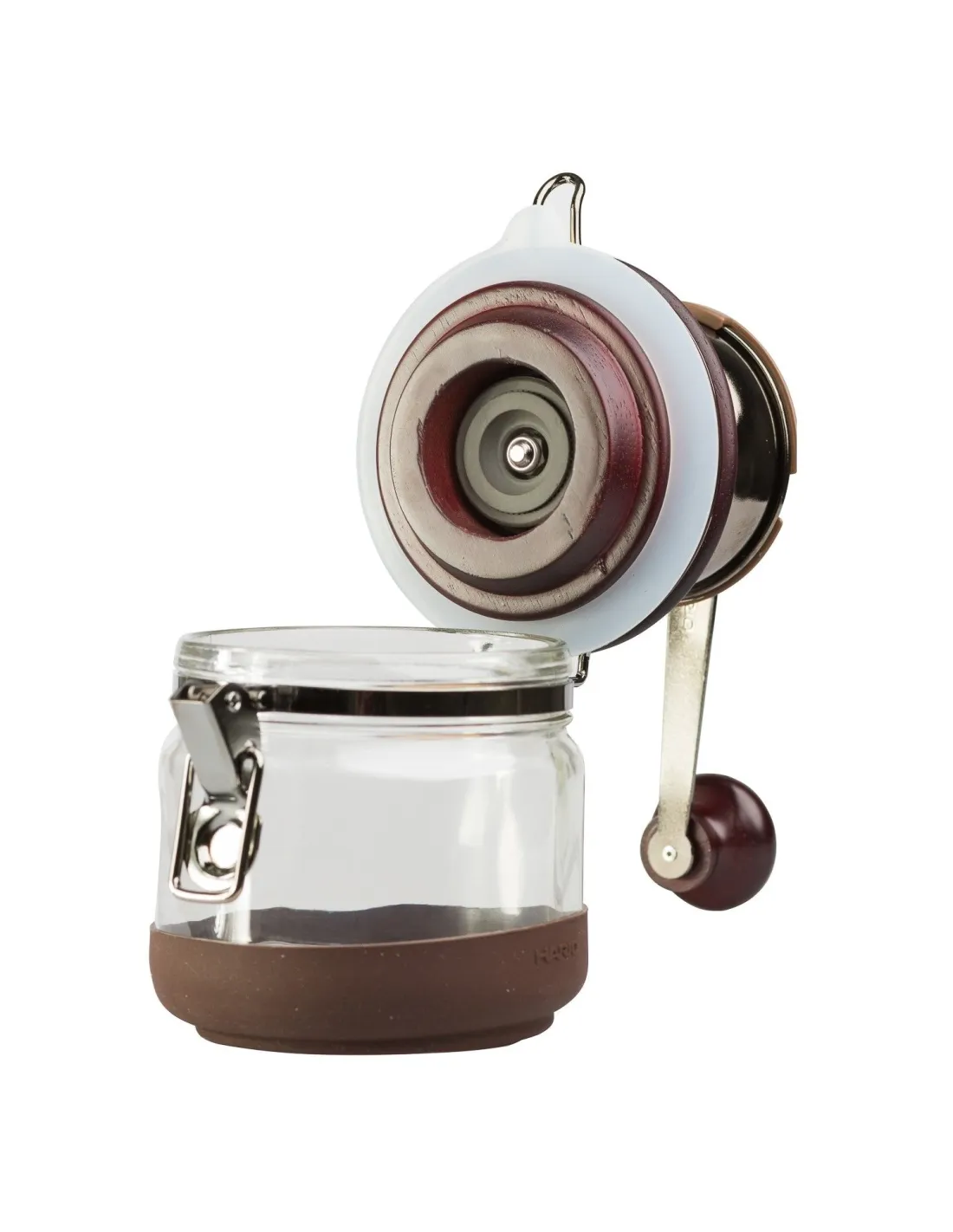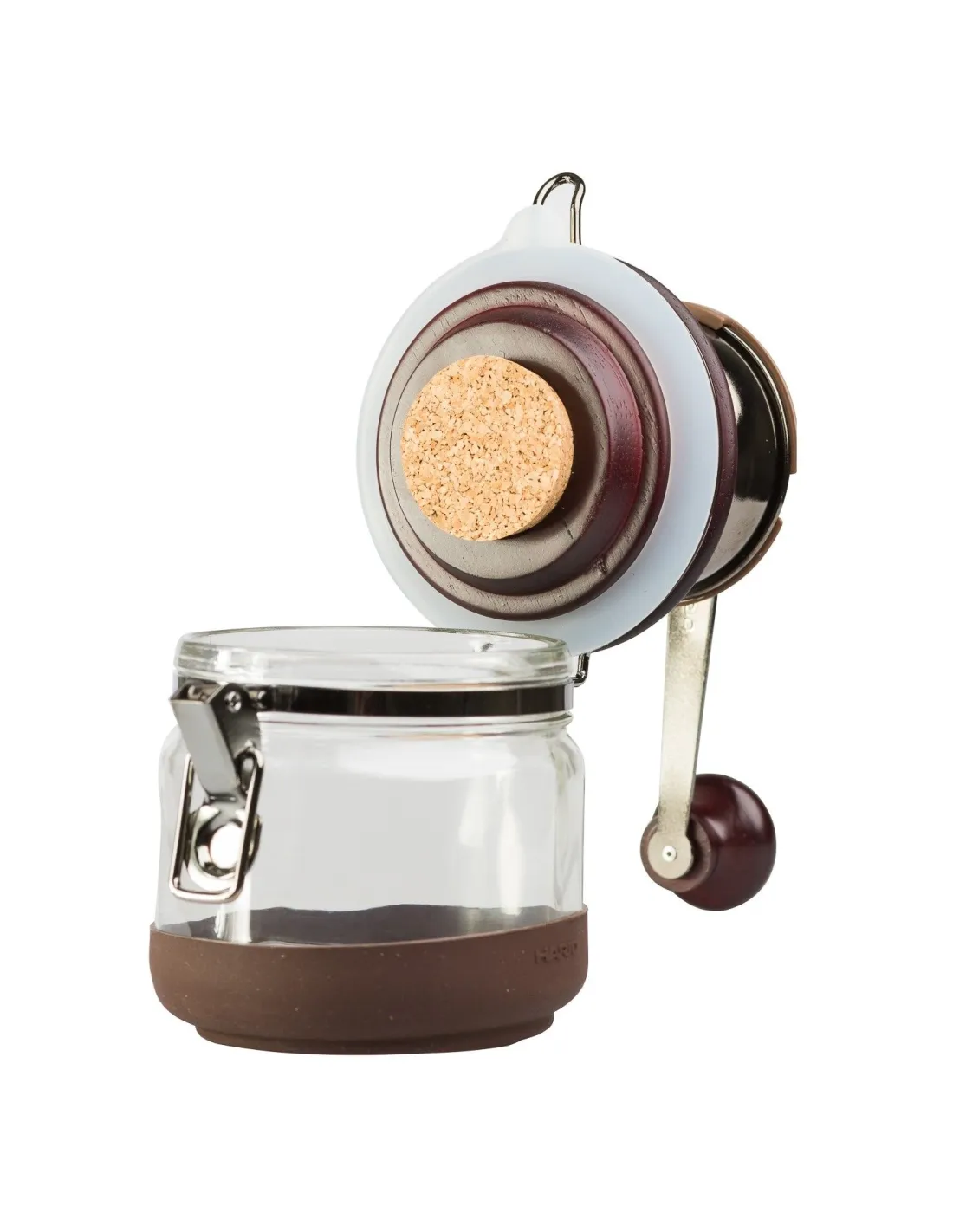 A Hario Canister (CMHN-4) kézi őrlőlegújabb változata kerámia őrlőkövekkel, állítható őrlési durvasággal és nagy, lezárt tárolóval a frissen őrölt kávé tárolására.