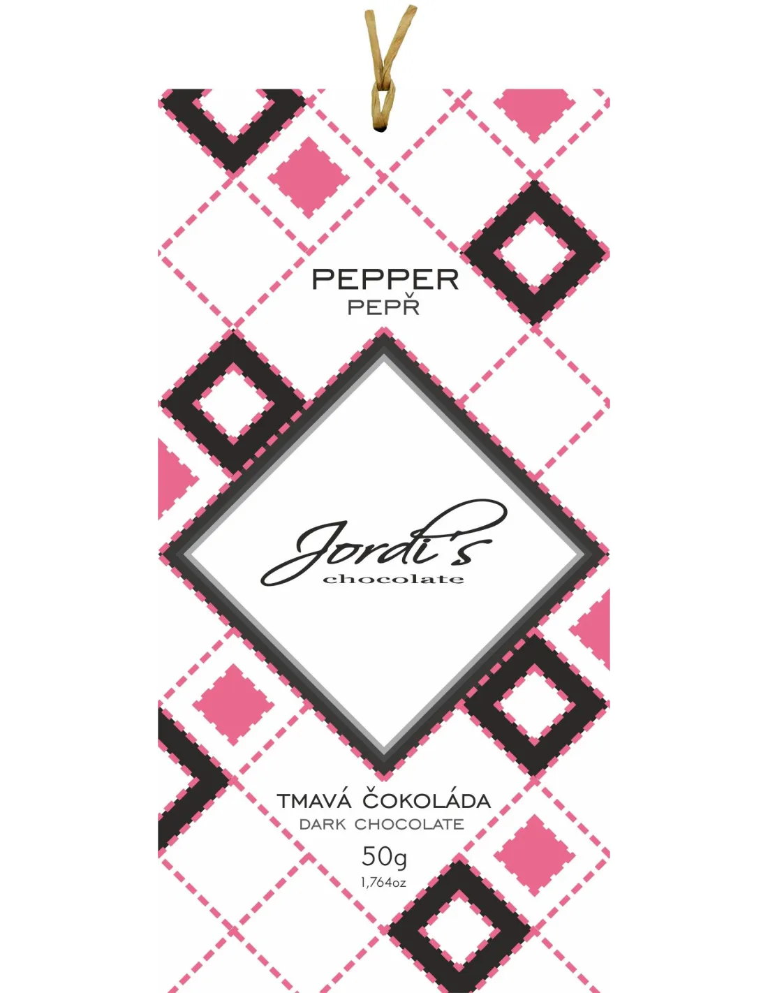 Sötét A csokoládé borssal egy teljesen egyedi kombináció, ahol a dohány, a pörkölt cukor, a kakaóbab íze és a bors fűszeressége egyesül. Az eredmény egy kellemesen durva csokoládé.