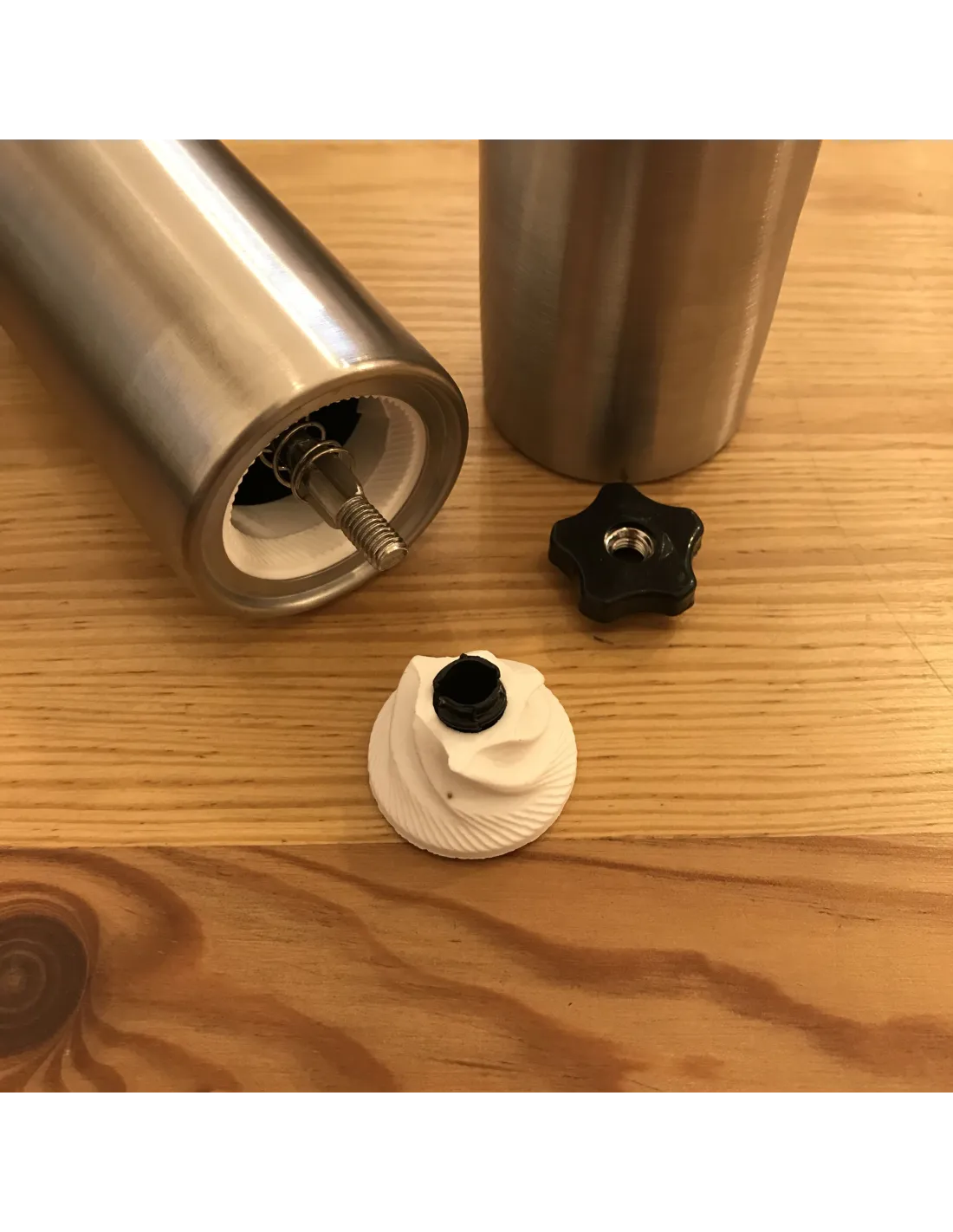 Az őrlőkövek kerámiából készültek , ami nagyon kíméli a kávét. A darálón könnyedén beállíthatja az őrlés durvaságát finomról durvara . A daráló tökéletesen illeszkedik az AeroPress- be.