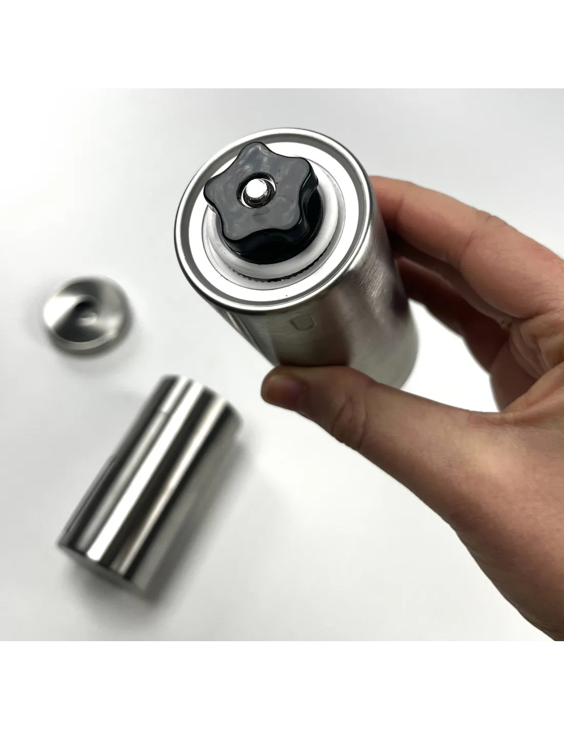 Teljesen rozsdamentes, elegáns Kaffia Tall kézi csiszológép kerámia köszörűkövekkel a gyors és kényelmes csiszoláshoz akár útközben is.