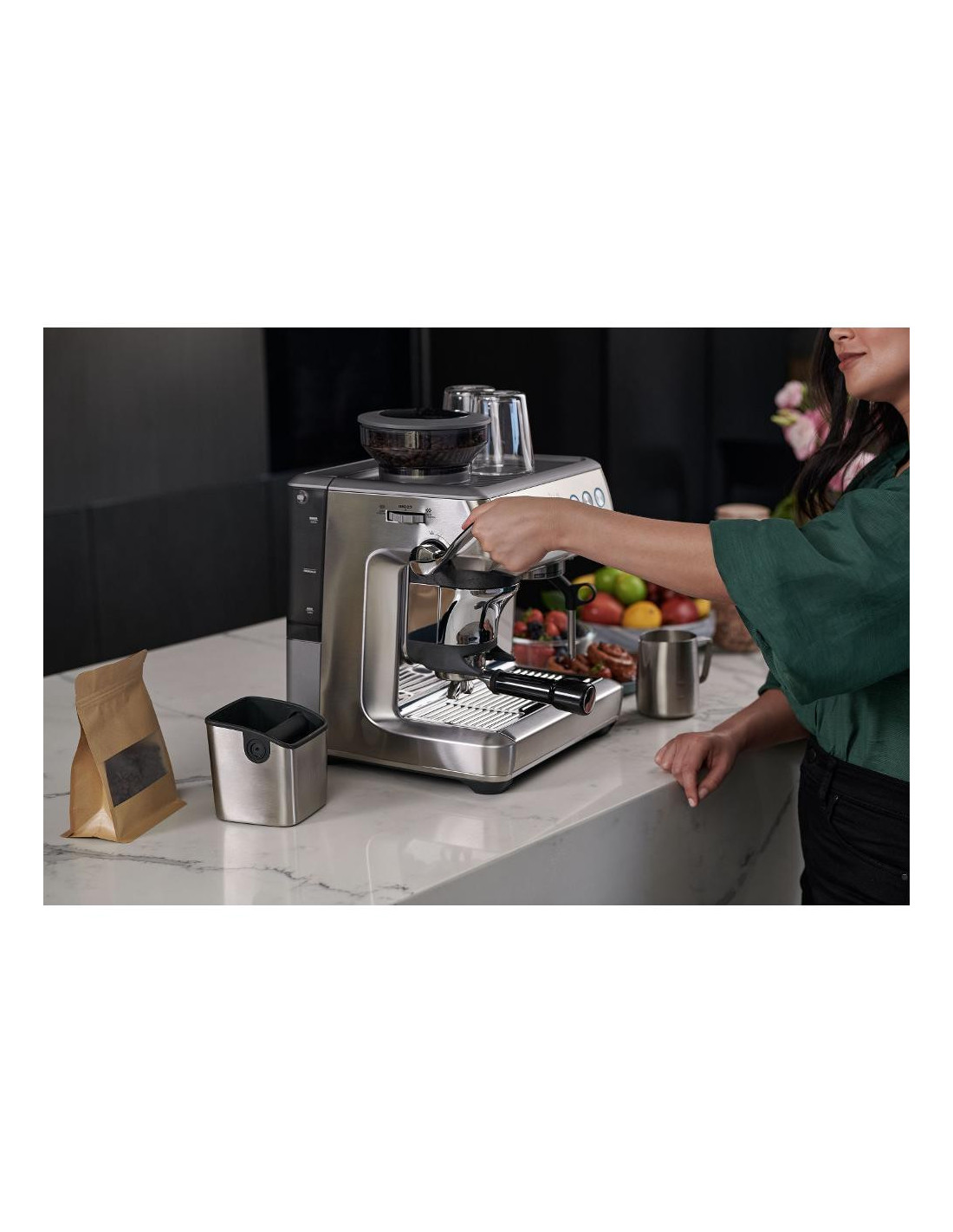 A fém kúpos kövekkel ellátott integrált őrlő 25 fokos durvaságot kínál, a közvetlenül a karba történő automatikus őrlés pedig időt és helyet takarít meg.