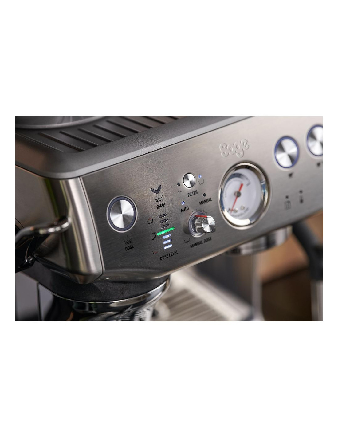 Prémium karos kávéfőző beépített darálóval + beépített tamper a gyors kávéfőzéshez.