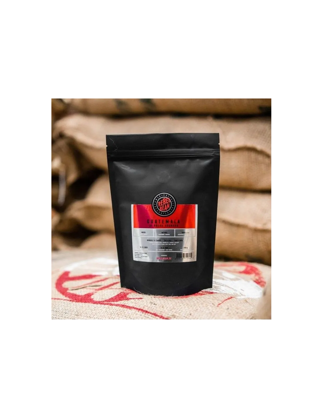 Válogatott és frissen pörkölt Guatemala La Bolsa Granada kávé a brünni Rebelbean pörkölőből.