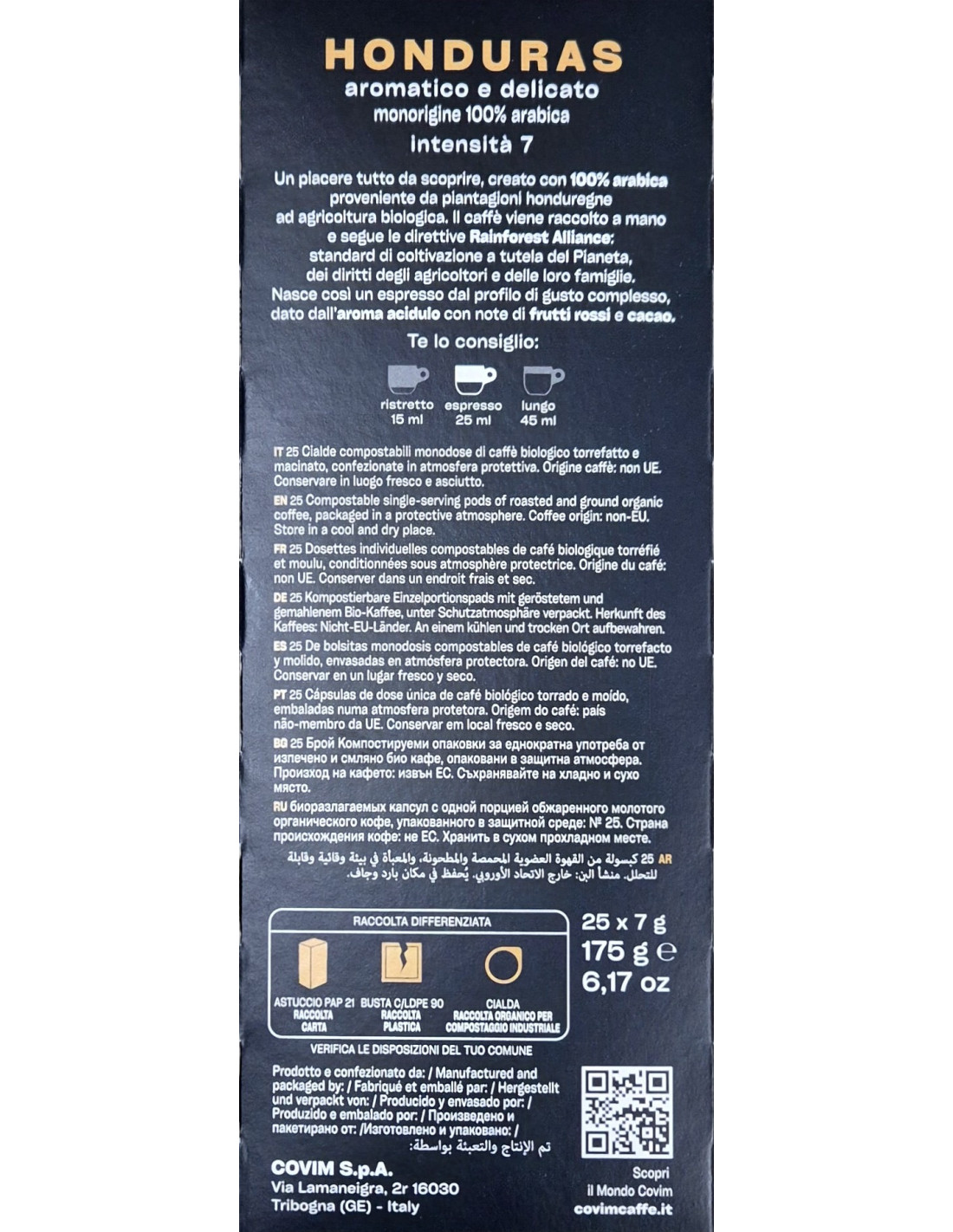 E.S.E. Pods Covim Honduras 100% Arabica, 25 adag - gyors eszpresszó finom aromával, csokoládés és gyümölcsös jegyekkel.