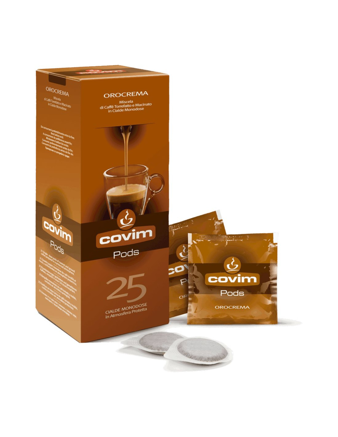 E.S.E. Pods Covim Orocrema, 25 adag - arabica és robusta keveréke a gazdag krémesség és a kiegyensúlyozott csokoládés jegyekért.