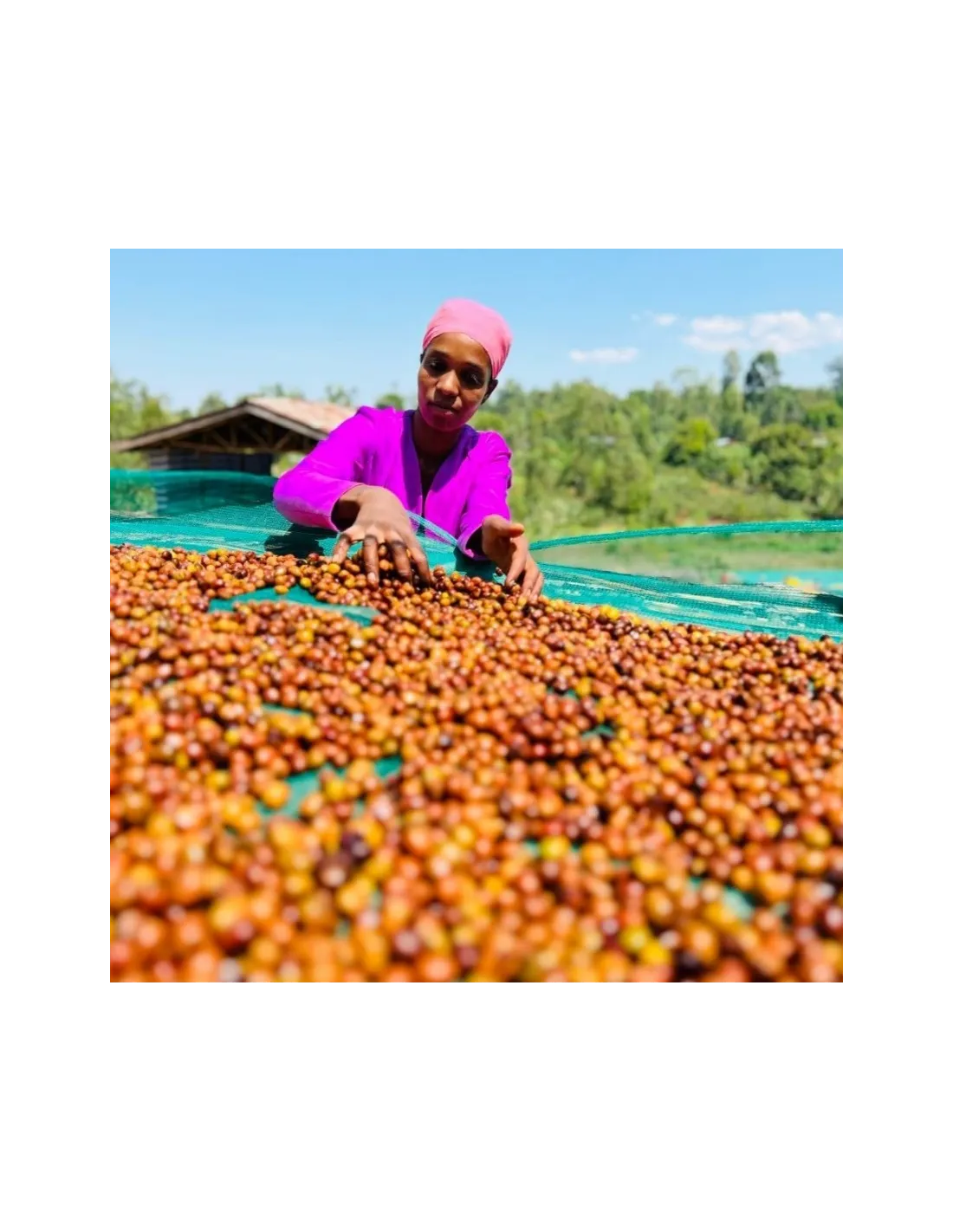 Ebben a szezonban az etiópiai Guji régióból érkezett hozzánk. Beleszerettünk a helyi anaerob erjesztési módszerbe. A szüret idején nagyon meleg volt, ami az erjedés során megzavarhatja a dolgokat. Ezért a cseresznyét egy hideg vízzel teli tartályba dobtuk. Ez lehűtötte az egész erjedési folyamatot, és tisztább gyümölcsízt és nagyobb édességet ért el.