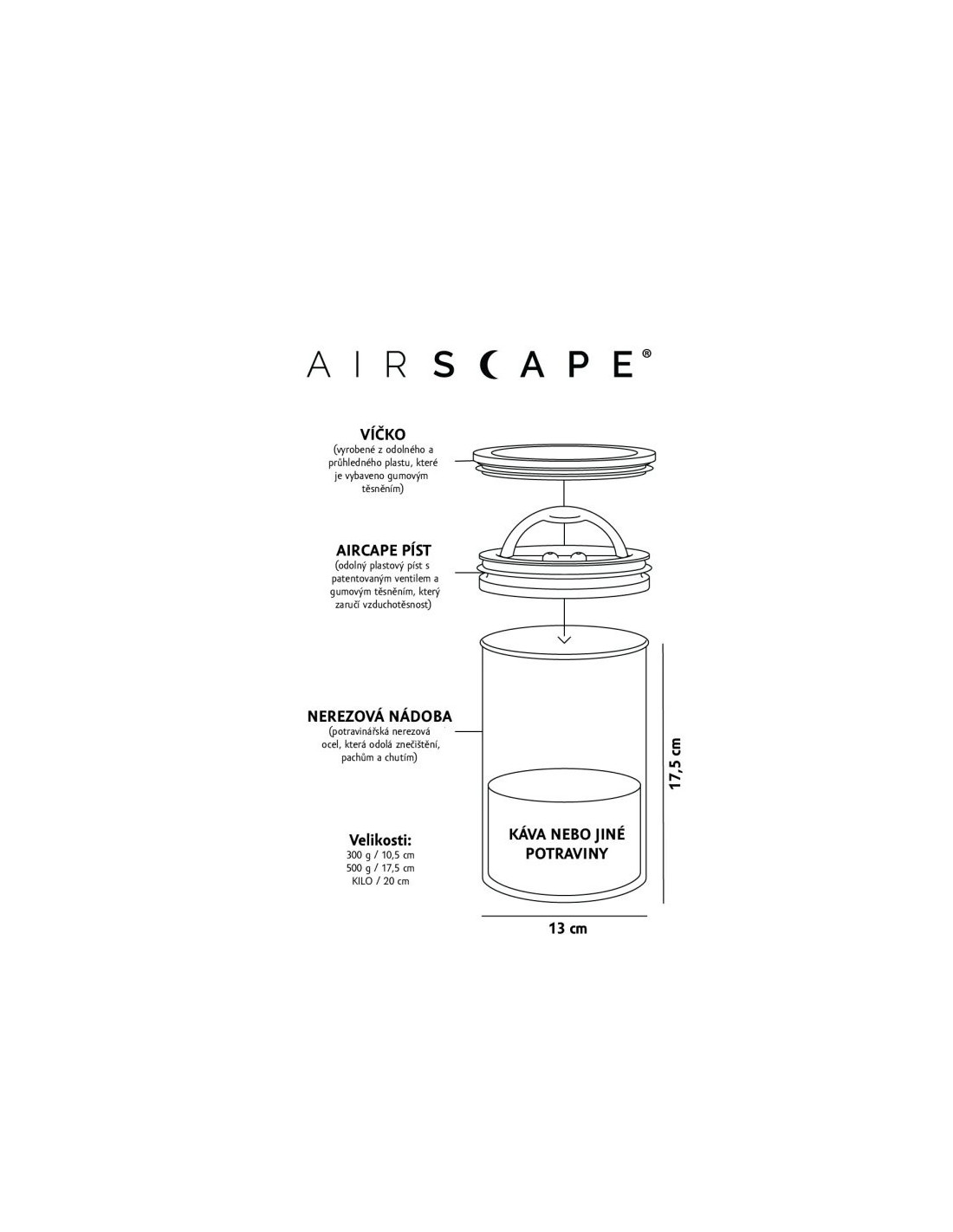 Az AirScape acéldoboz nemcsak kávé, hanem tea, liszt, diófélék, cukor, só vagy más ömlesztett élelmiszerek tárolására is alkalmas. A hosszú élettartam és a tömörség megőrzése érdekében kézi mosás ajánlott.
