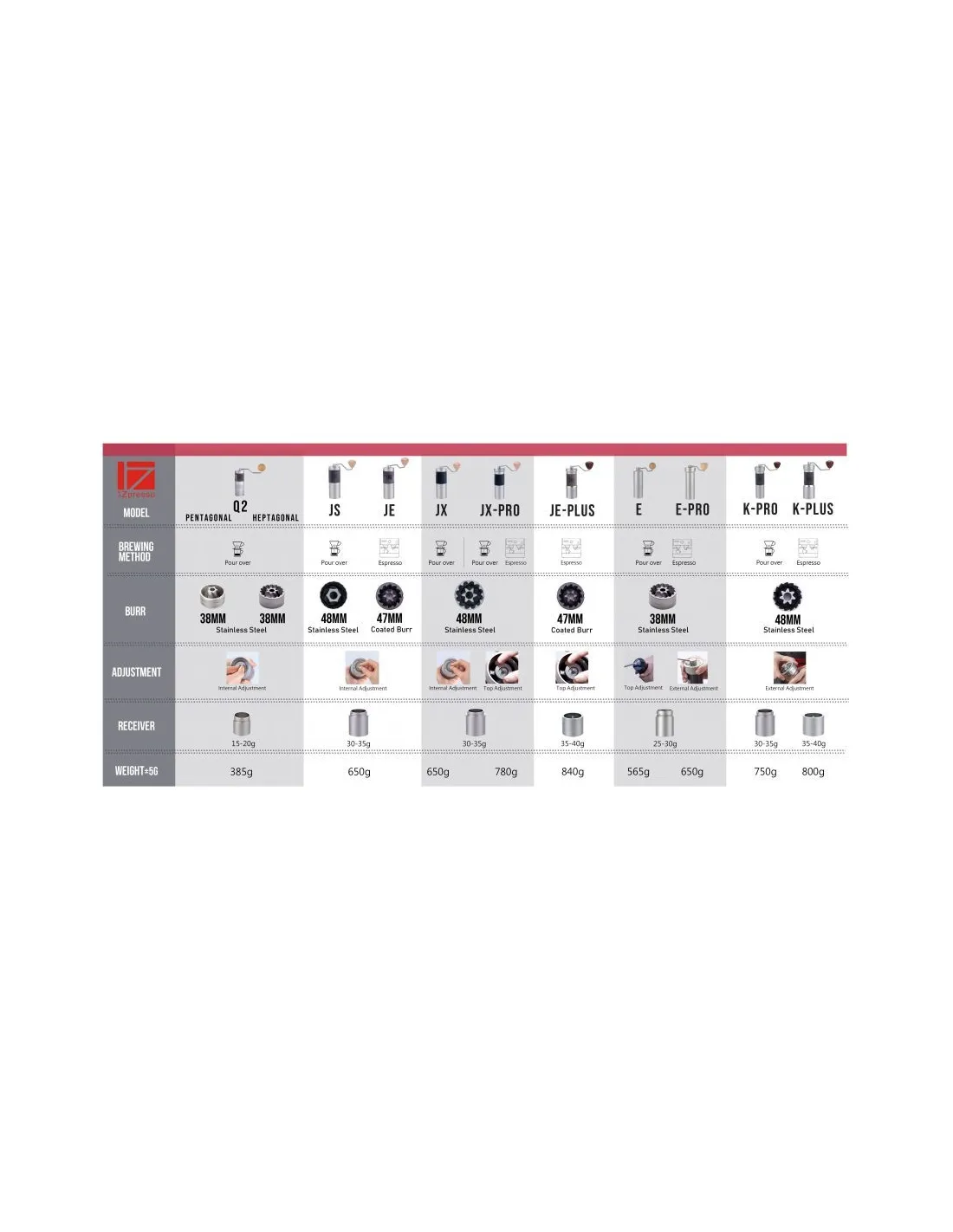 Használat: a nagyon finom őrlési beállításnak köszönhetően az 1zpresso J-MAX különösen ajánlott eszpresszóhoz. Az őrlő a legnagyobb pontossággalrendelkezik az 1Zpresso őrlői között.