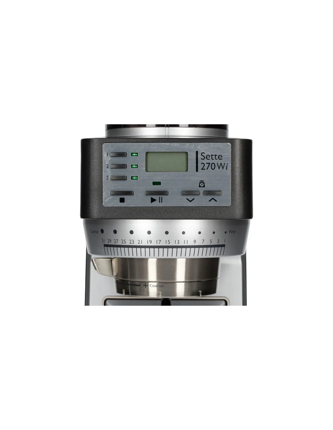 Ez az otthoni használatra szánt csúcskategóriás őrlő rendkívül pontos őrlési durvasági beállításokat kínál nemcsak eszpresszóhoz, hanem különböző alternatív készítményekhez is. Az "i" a névben az intelligenciát jelenti . Elődjéhez, a Sette 270W-hez képest a Sette 270Wi daráló mostantól gyorsan kiszámítja és előre jelzi a megállási pontot, amikor az őrlési beállításokat, a kávét vagy a tétel súlyát változtatja. Ez kiküszöböli a kézi kompenzálás szükségességét.
