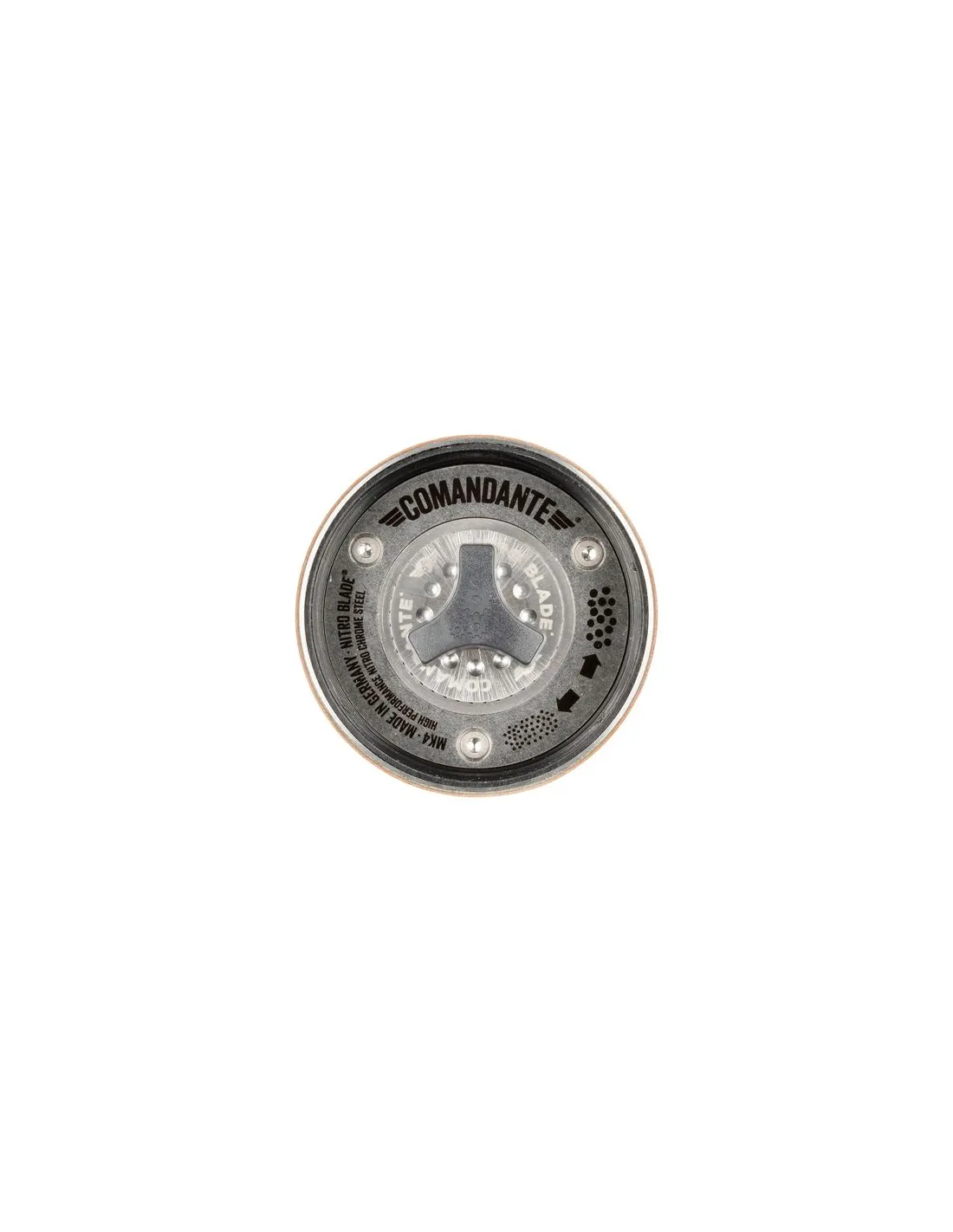 A daráló egyedi kialakítású. A köszörűgép gyártásához kiváló minőségű anyagokat használtak, így nemcsak a köszörűkövek, hanem a test, a tengely, a forgattyú és a mikrogolyós csapágyak is rozsdamentes acélból készültek. A Comandante termékek nem tartalmaznak alumíniumot. Ahol a polimerek felhasználhatók a teljesítmény javítására, ott a Comandante nagy teljesítményű, BPA-mentes polimereket használ, amelyek megfelelnek a legszigorúbb élelmiszerbiztonsági előírásoknak. Ezeket az anyagokat úgy tervezték, hogy ellenálljanak az évekig tartó szigorú használatnak. A Comandante szereti a természetes fát. A tölgyfából készült fogantyú csodálatosan ergonomikus és gyönyörűen néz ki.