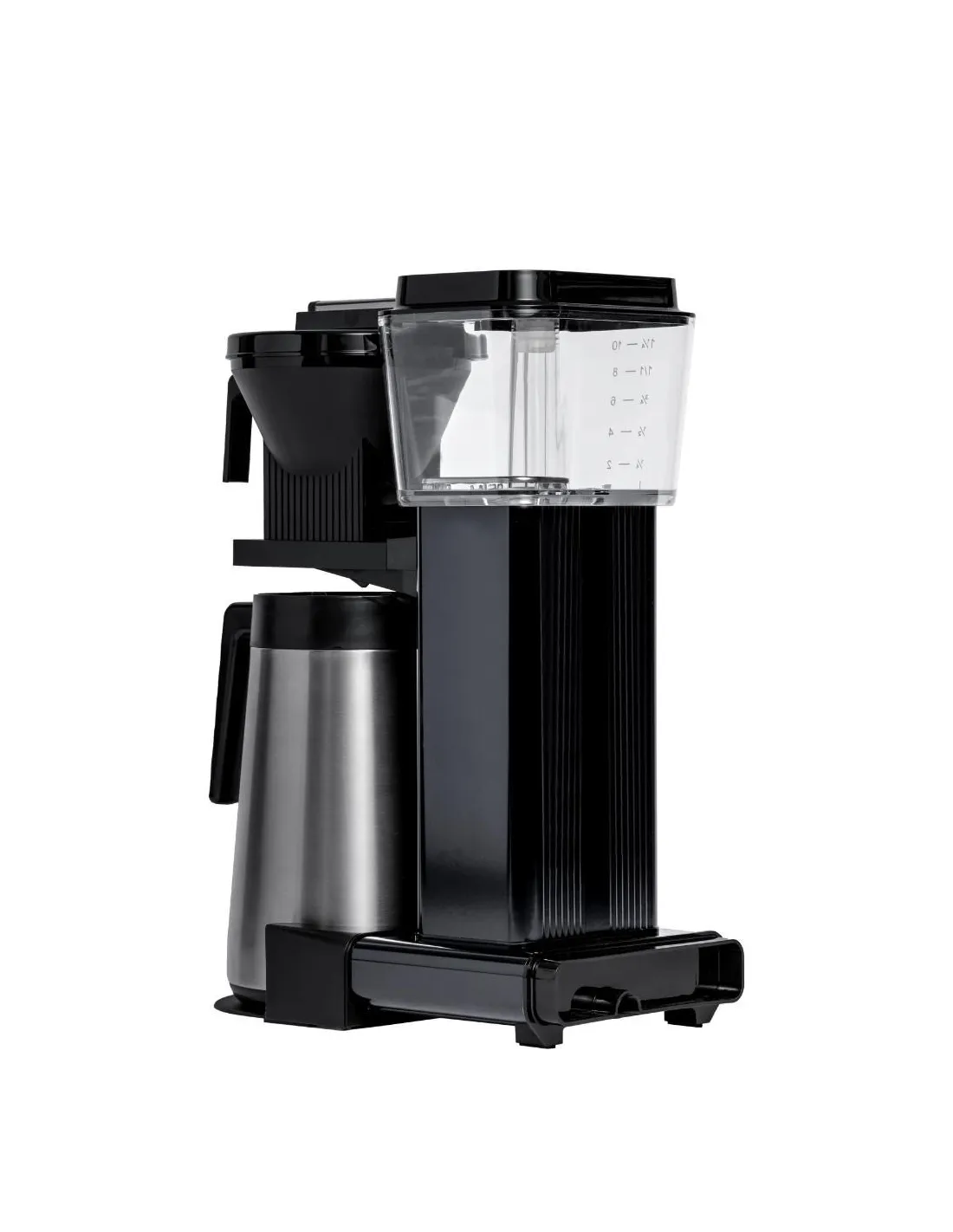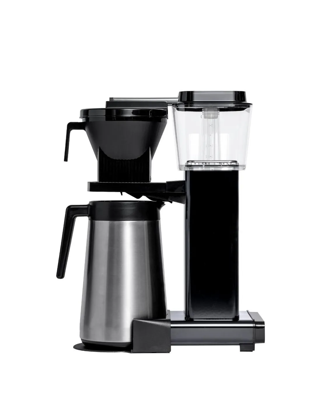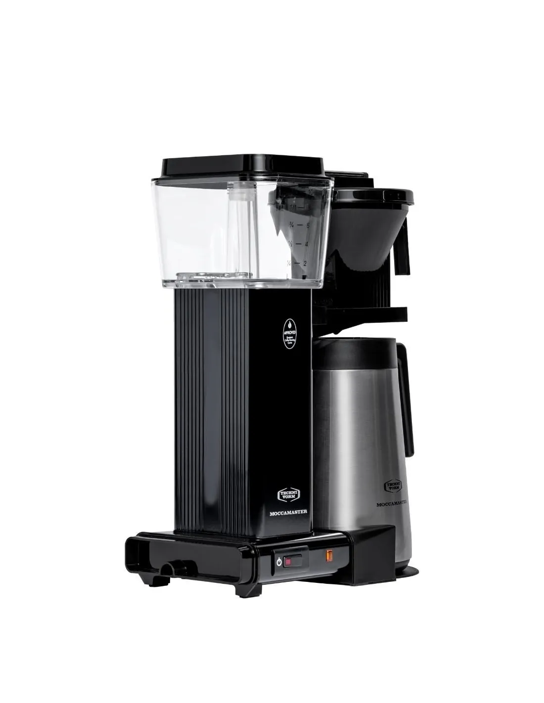Ennek a kávéfőzőnek elengedhetetlen tulajdonsága, hogy az extrakciós folyamat során állandó 92-96°C-os hőmérsékletet tud fenntartani. A kávé egyenletes kiöntését egy speciális 9 lyukú fej biztosítja. A Moccamaster KBG-741-hez képest ez a modell 1,25 literes rozsdamentes acélból készült termo-tartállyal rendelkezik, amely tovább tartja forrón a kávét. Még csak nem is kell aggódnia az egész készülék összetettsége miatt. A kávéfőzőnek csak egy gombja van a ki- és bekapcsoláshoz, valamint automatikus leállítással és cseppleállító funkcióval rendelkezik.