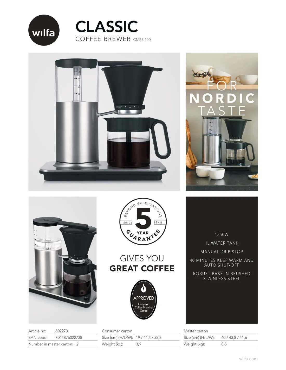 A külföldön nagyon népszerű norvég Wilfa márka egy tökéletes luxuskávégéppel büszkélkedhet, amellyel nagyon egyszerűen és gyorsan elkészíthető akár 8 csésze tökéletesen kiegyensúlyozott filterkávé.