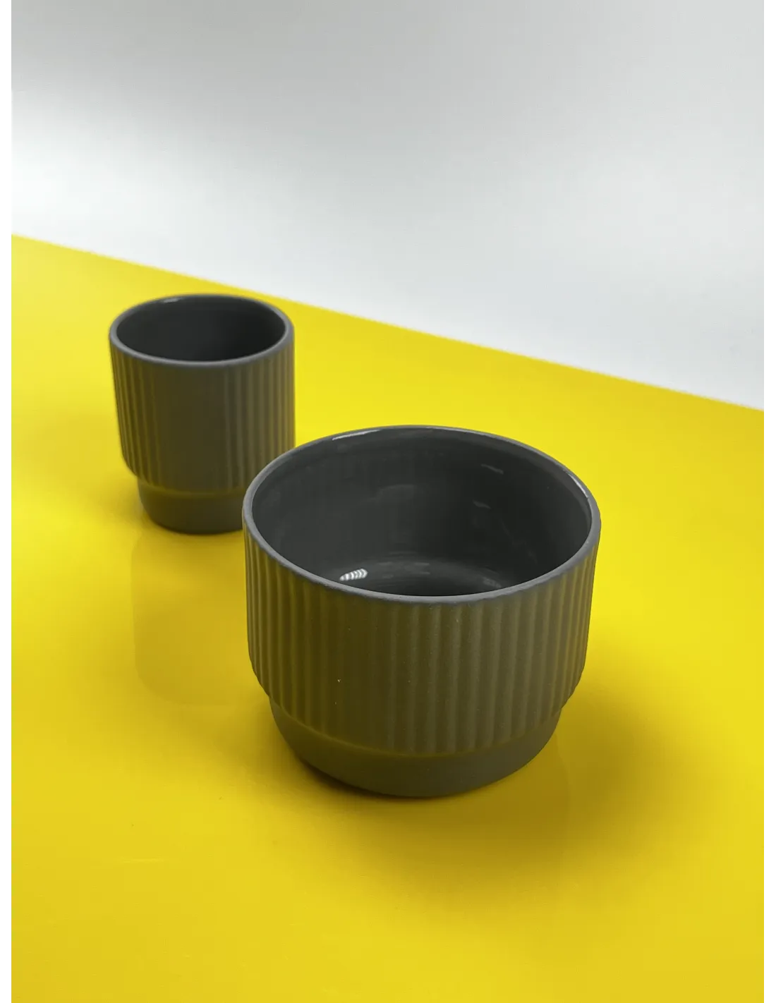 Modern és ízléses kialakítású szürke kőedény cappuccino csésze, amely ideális a kávéval töltött pihenés pillanataihoz. Kapacitás: 230 ml