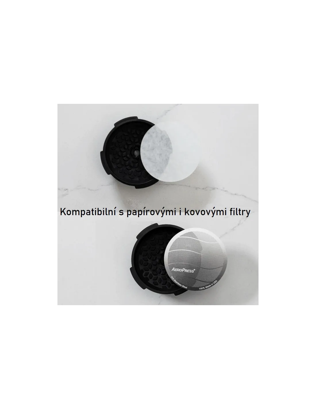 A tartozék papír- és fémszűrőkkel egyaránt használható, így többet kísérletezhet a kávéfőzéssel, és megtalálhatja az ideális ízt. Papírszűrő használatával a préseléskor megnövekvő nyomásnak köszönhetően a sötét pörkölésű kávéval eszpresszószerű crema-t érhet el.