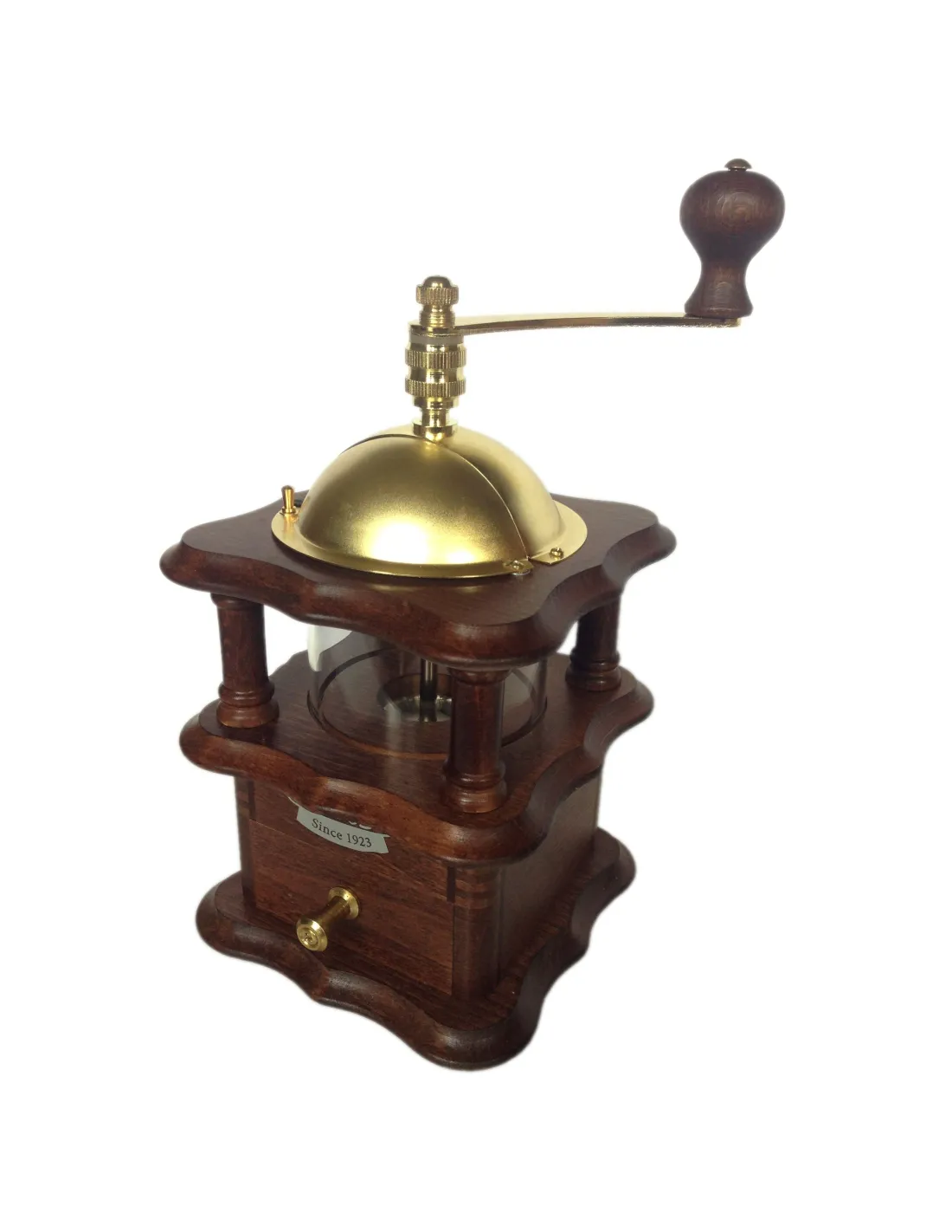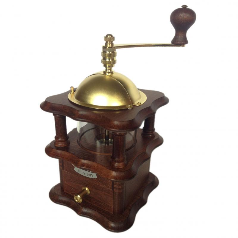 Lodos Nostalgiekávédaráló sötét bükkfából, érdekes kávéablakkal és 10 év garanciával a tradicionális cseh Lodos cégtől.
