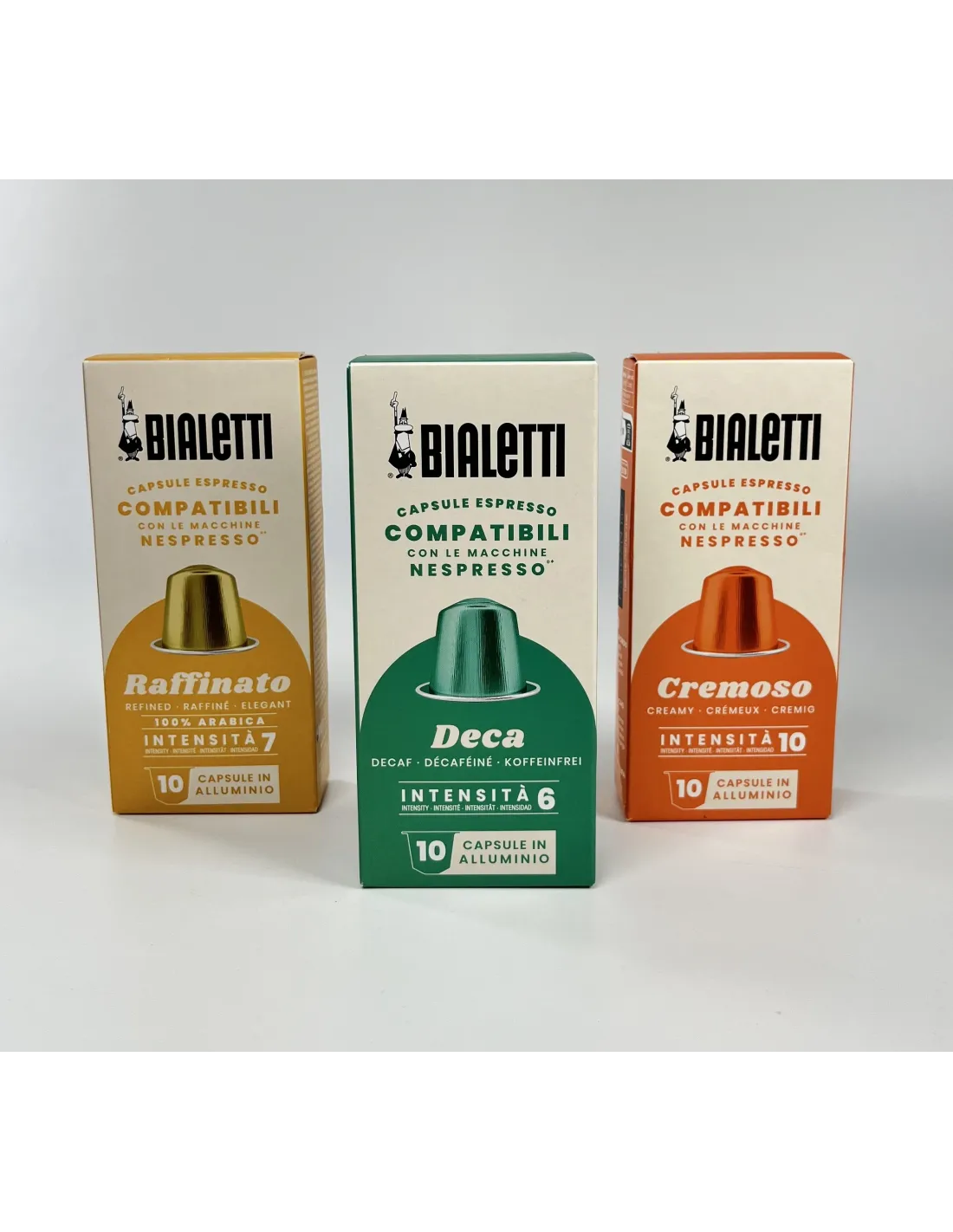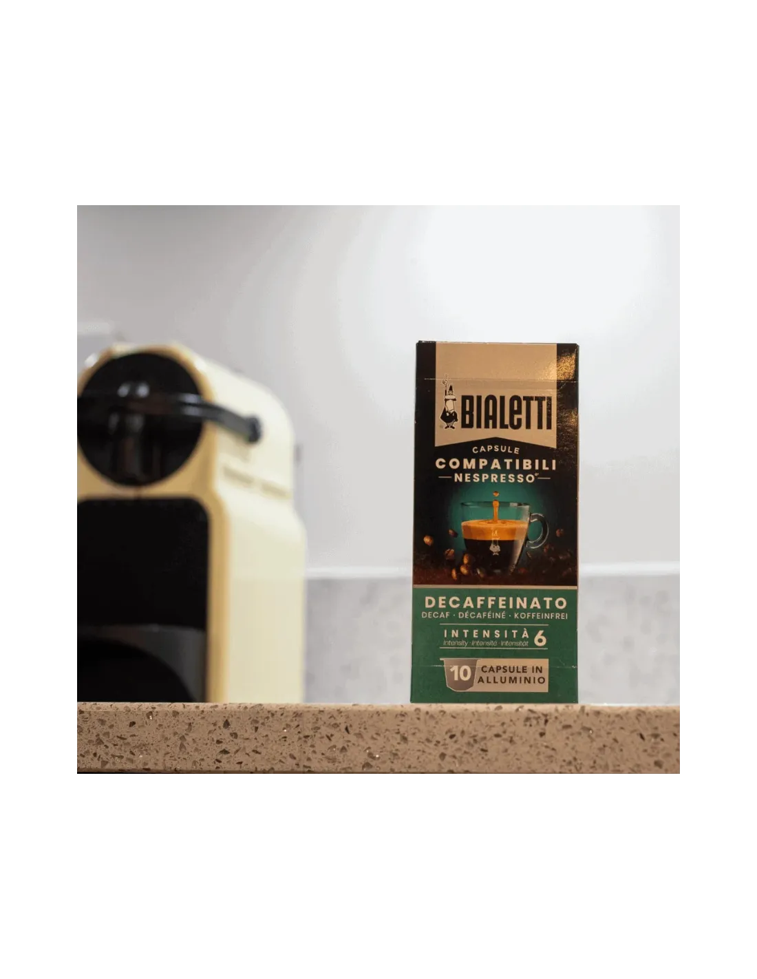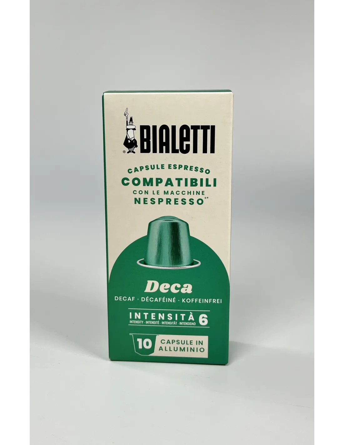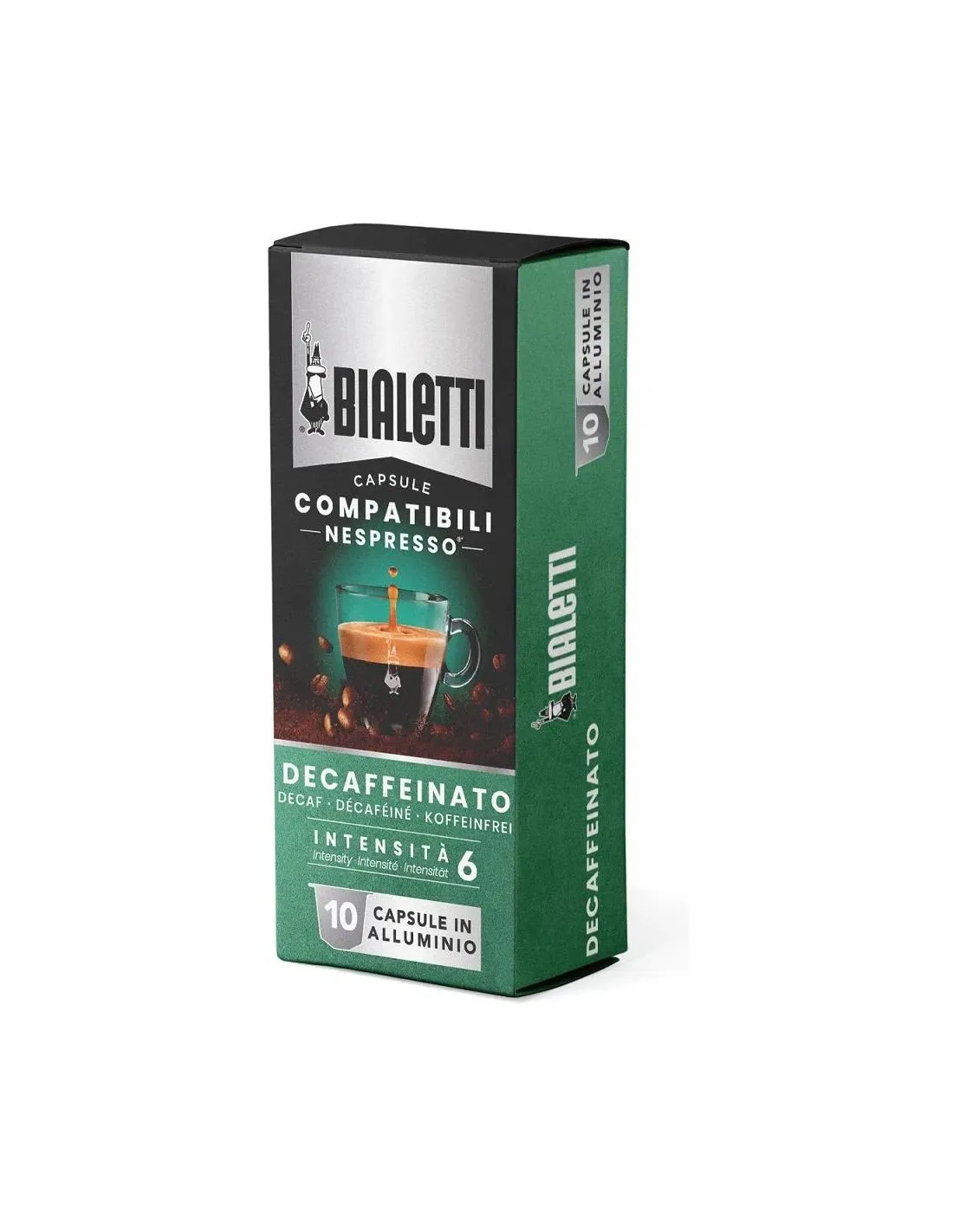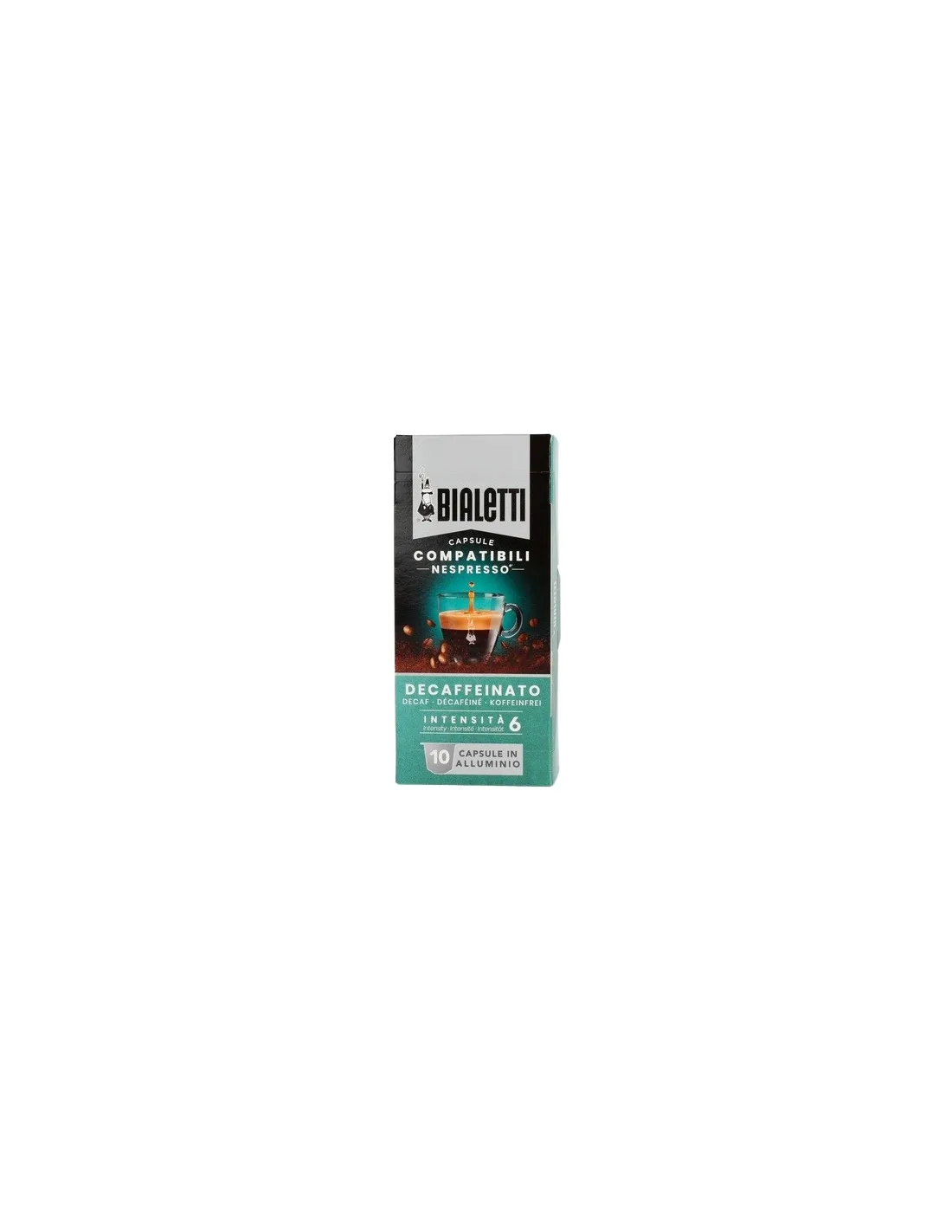 Bialetti Nespresso® Decaf kapszula - az olasz eszpresszó teljes íze kompromisszumok nélkül! Élvezze a gazdag aromát és a finom gabonás jegyeket, mindezt koffein nélkül.