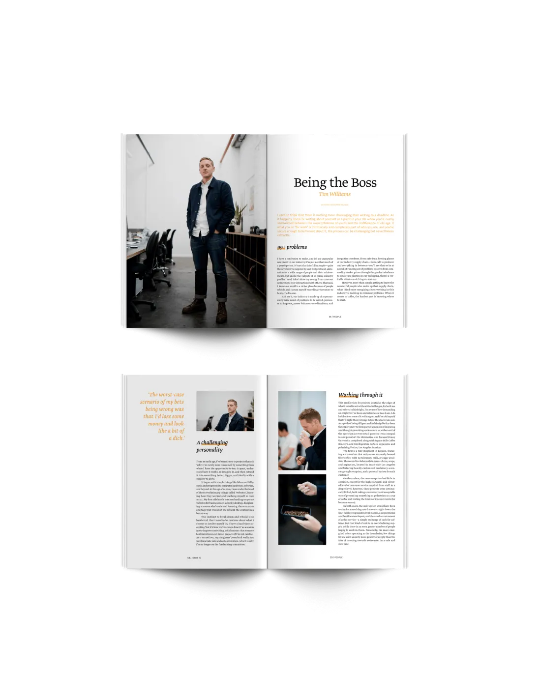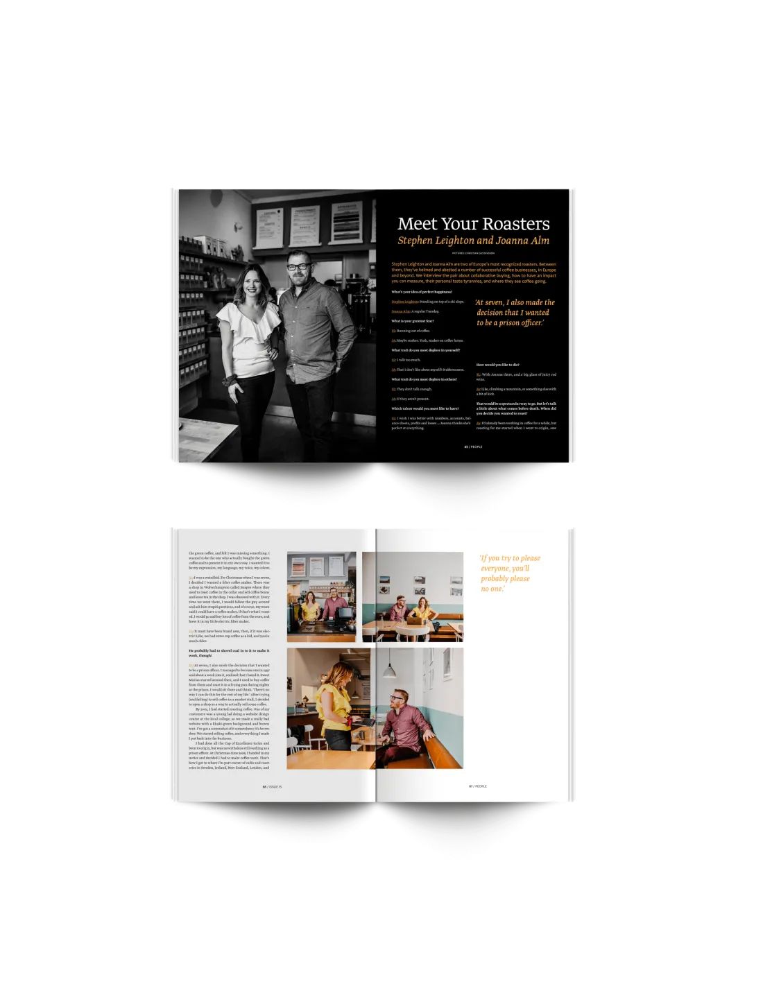 Az"Emberek" fejezet tele van történetekkel azokról az emberekről, akik a kávéipart alkotják - a Stephen Leighton és Joanna Alm világhírű pörkölőkkel készített interjúktól kezdve a New York-i életről szóló beszámolókon át Tim Williams gyönyörűen megírt visszaemlékezéséig.