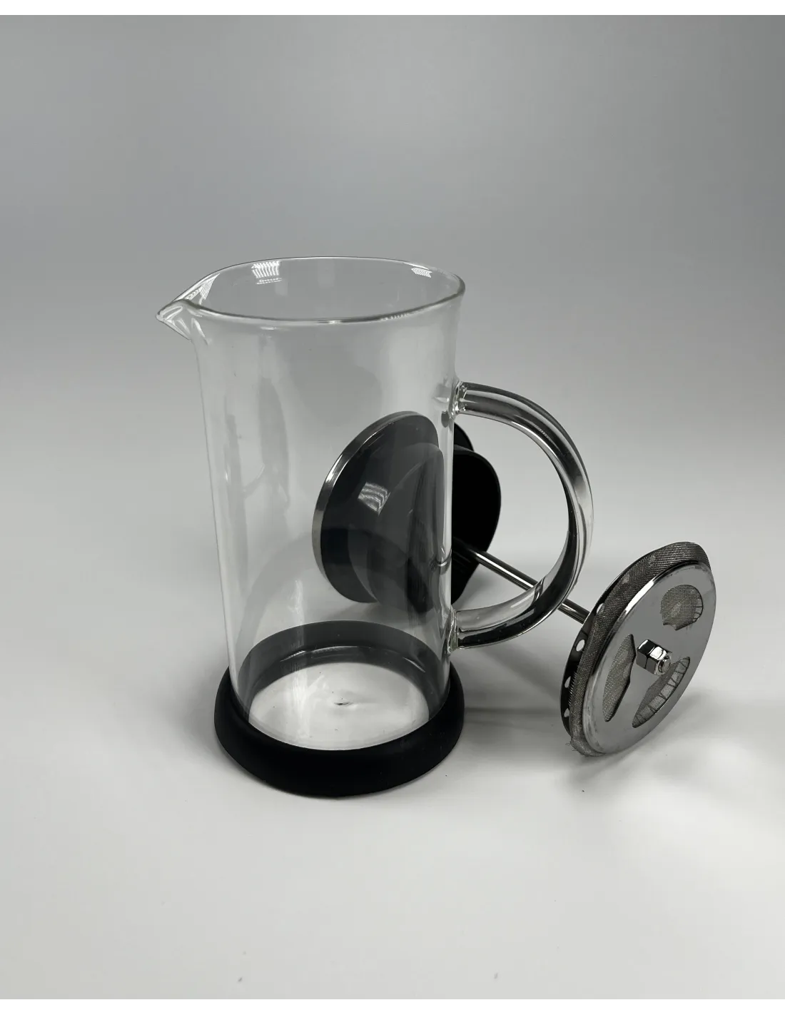 AFrench press teáskanna boroszilikát üvegből készült, amely akár 120 fokos hőmérsékletet is kibír. A dugattyú és a fedél rozsdamentes acélból készült, így nem áll fenn a dugattyú szétrobbanásának és hasonlóknak a veszélye. A kupakba egy második szűrő van beépítve. A vízforraló alján egy gumipárna található, amely szigetelésként szolgál. Könnyen eltávolítható.