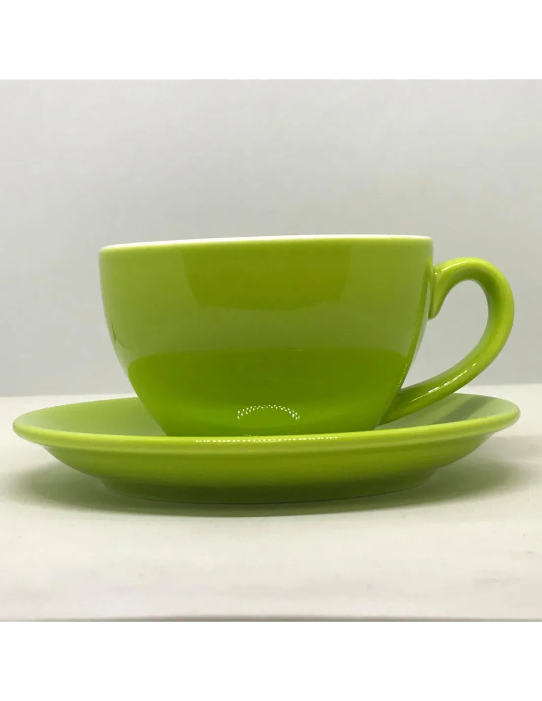 Porcelán csésze cappuccinóhoz, 200 ml űrtartalommal. Alátétet is tartalmaz. Szín: limezöld.