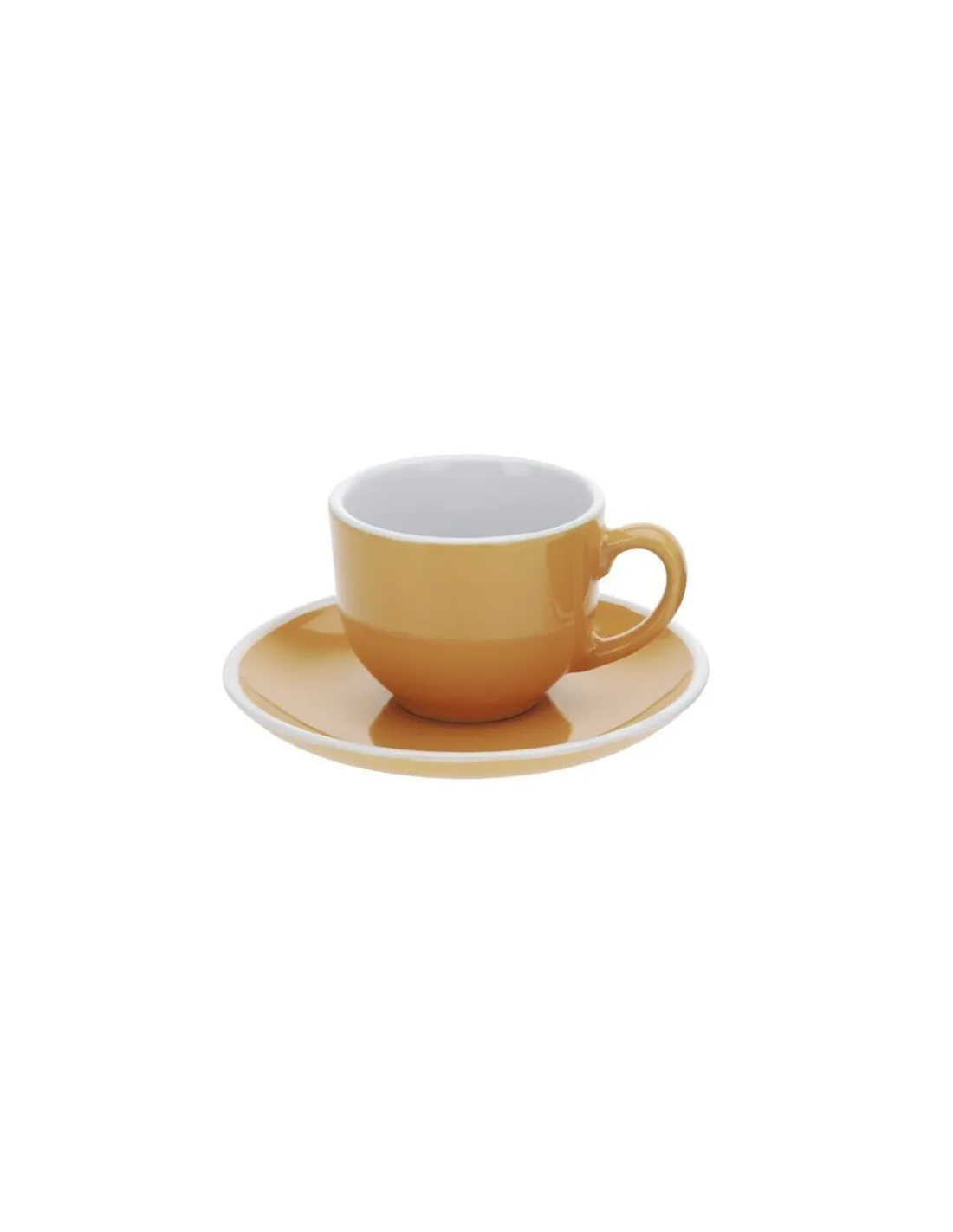 Kerámia eszpresszócsésze 90 ml térfogattal, amely klasszikus vagy dupla eszpresszóhoz alkalmas. Tartalmaz egycsészealjat. Szín: narancssárga.