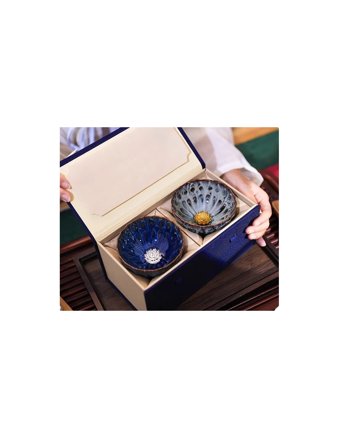 Elegáns Kaffia Blossom csészék készlete kínai stílusban, luxus ajándékdobozban csomagolva.