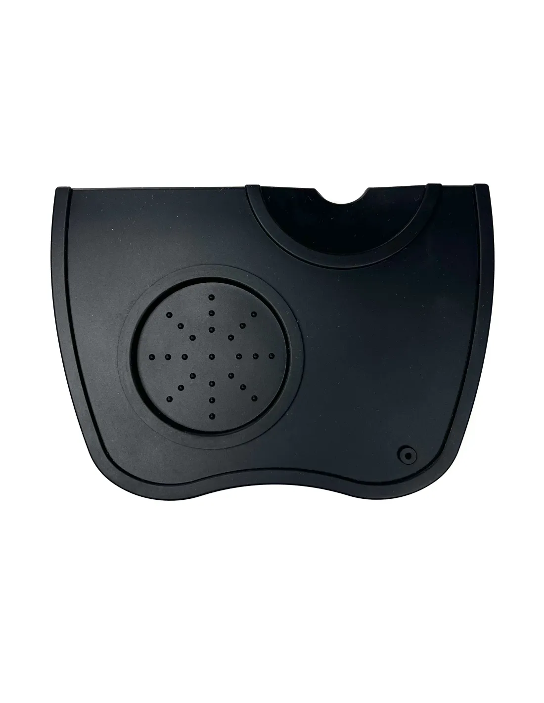 A gumiszőnyeg nélkülözhetetlen eszköz a rúd tetejének védelmére a kávé döngölésekor . A praktikusan hajlított elülső rész lehetővé teszi, hogy az alátétet a deszka szélére helyezze. Kivágás a portaszűrőhöz és a szabotázshoz..