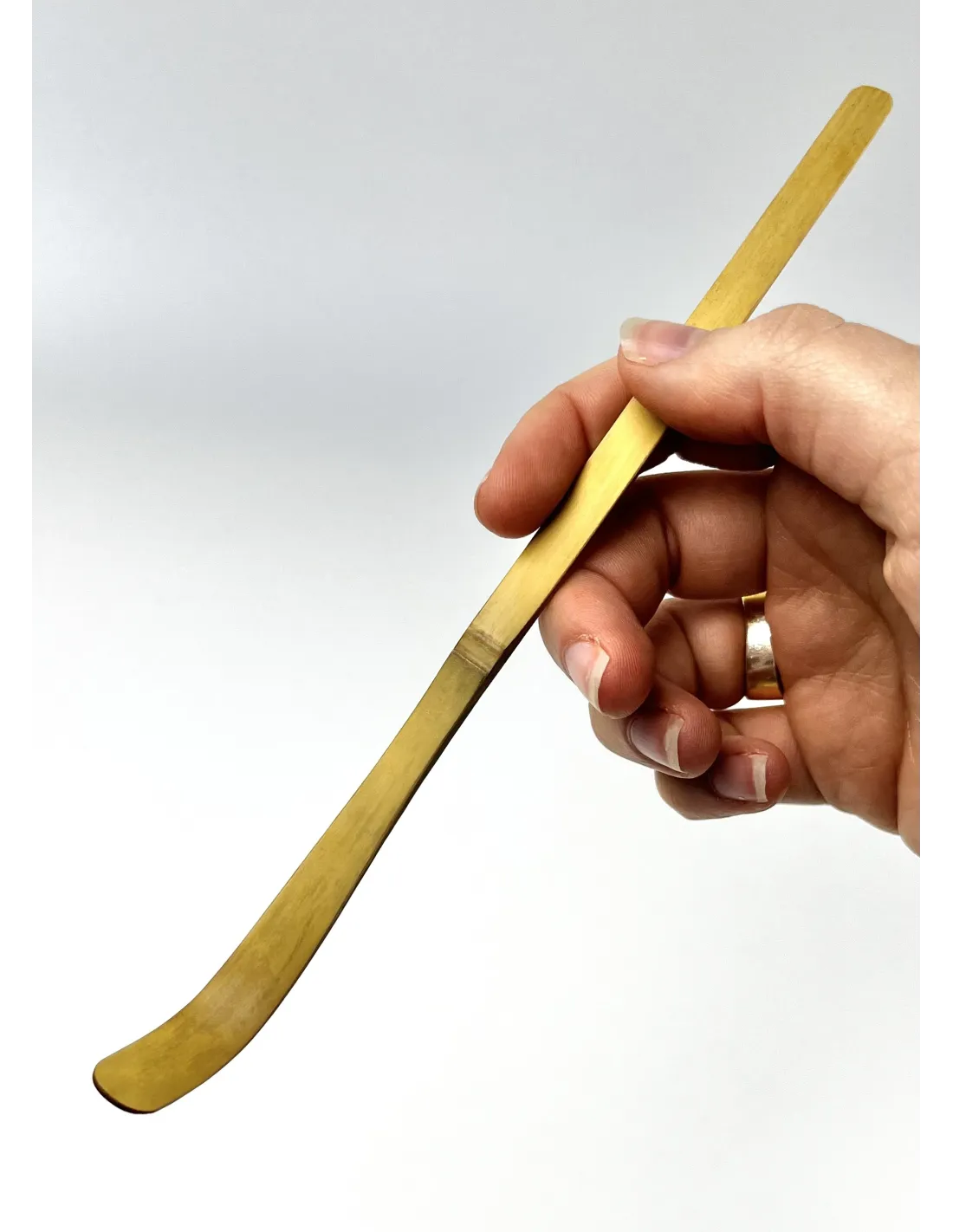 A kaffia bambusz matcha teakanál, más néven"chashaku", a matcha elkészítéséhez használt hagyományos eszköz. A finoman megmunkált bambuszból készült kanalat a porított tea mennyiségének pontos kimérésére használják. Elegáns, ívelt formája megkönnyíti a matcha közvetlenül a tartályból történő kanalazását, így biztosítva a teaszertartás hiteles élményét. Ez az eszköz nemcsak praktikus, hanem esztétikailag is összhangban van a hagyományos teaszertartásokkal és kultúrával.