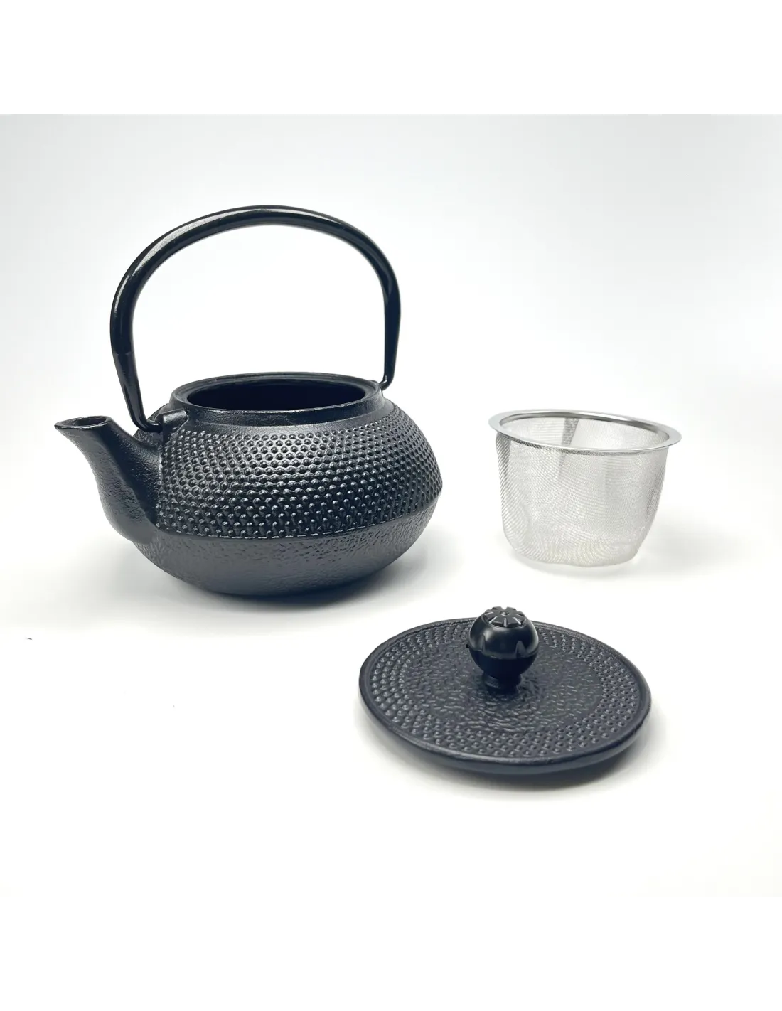 Ez az elegáns öntöttvas teáskanna egyesíti a szépséget a funkcionalitással. A 0,85 literes űrtartalomnak köszönhetően sokáig melegen tartja a teát, így az este folyamán több csésze teát is fogyaszthat. A teáskanna rozsdamentes acél szűrővel van ellátva, így könnyen elkészítheti teáját. A praktikus kialakítás könnyű karbantartást biztosít, akár fekete, zöld vagy gyógynövényes teát készít. Ez a stílusos kiegészítő eleganciát és eleganciát visz a teázási rituáléjába.