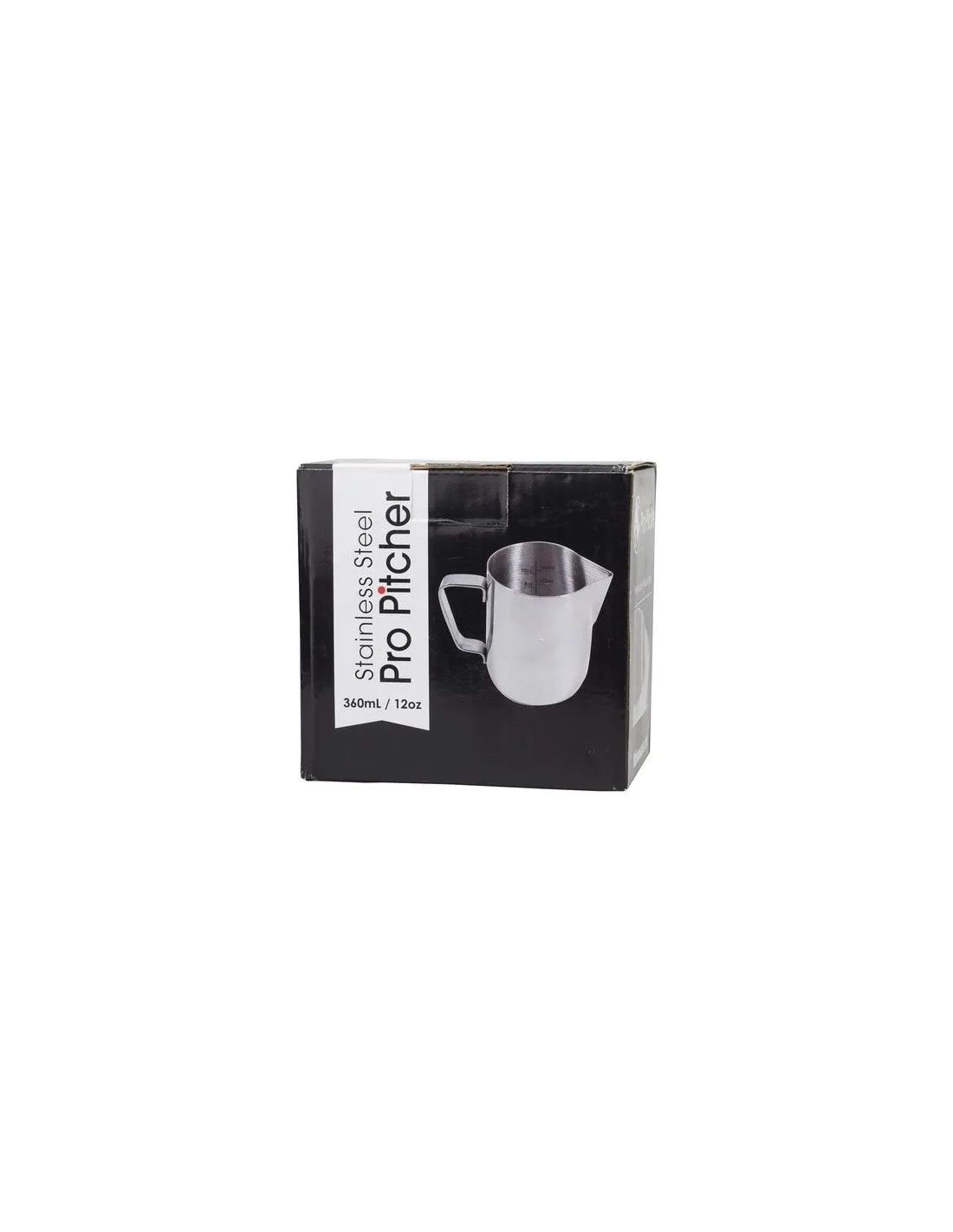 Rhinowares professzionális tejeskanna 1 mm vastag rozsdamentes acélból, 360 ml űrtartalommal.