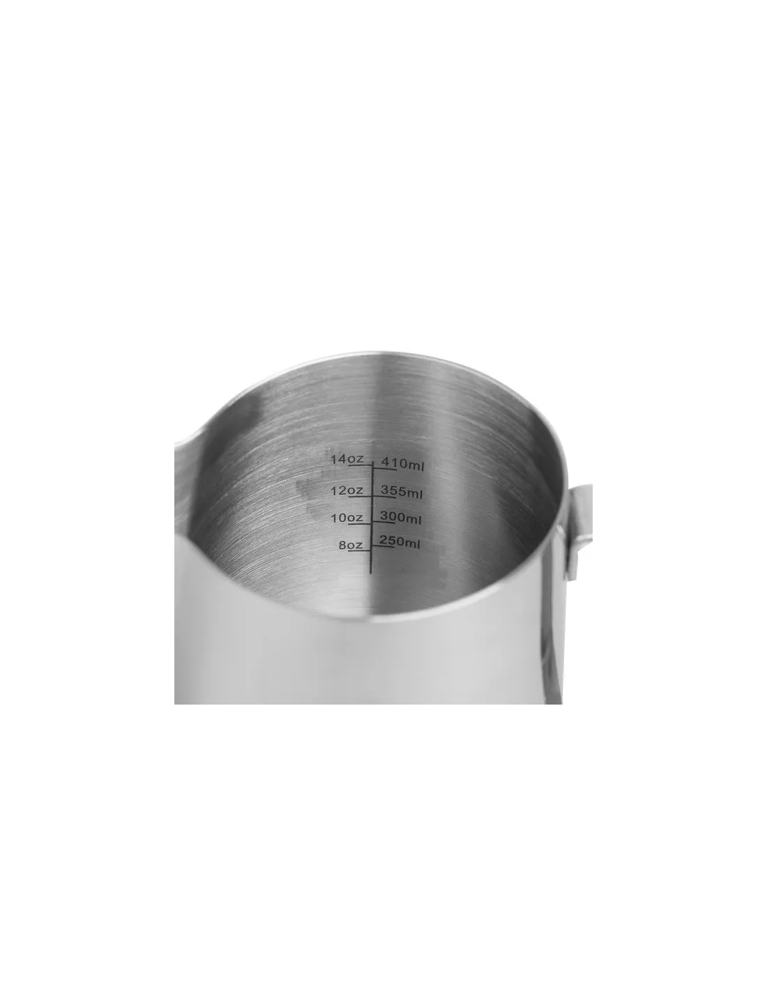 A teáskanna belső falán mindkét oldalon vonalak vannak, amelyek a térfogatot mérik milliliterben és unciában. Ez lehetőséget ad arra, hogy pontosan a megfelelő mennyiségű tejet mérje ki, így elkerülheti a felesleges pazarlást. A vonalak 410 ml-ig mérhetők, így bőven marad hely a tej felhabosításához és a lehető legjobb textúra eléréséhez.