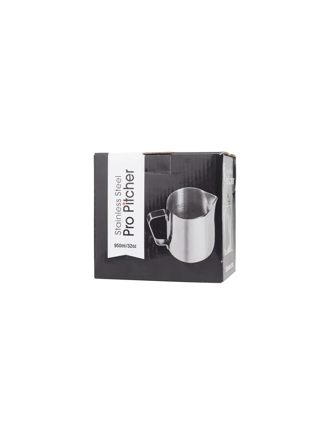 Rhinowares professzionális tejeskanna 1 mm vastag rozsdamentes acélból, 950 ml űrtartalommal.