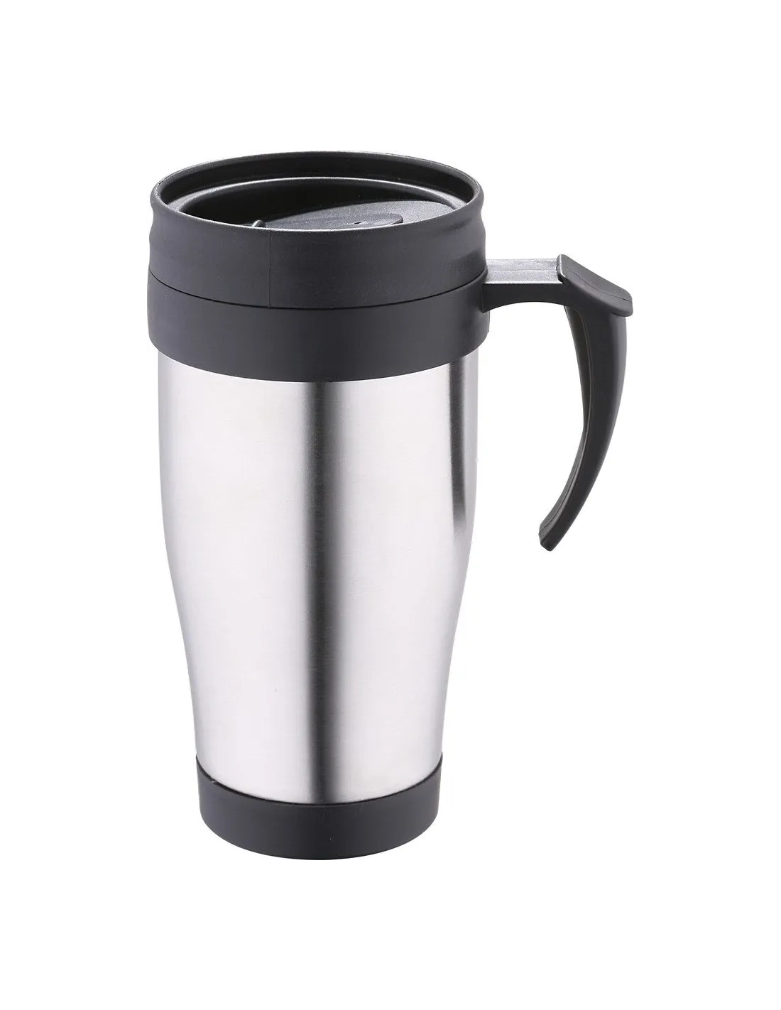 Rozsdamentes acél termo bögre 400ml térfogattal, amelynek köszönhetően a kávé vagy más ital tovább megőrzi a hőmérsékletét. Szín: ezüst-fekete