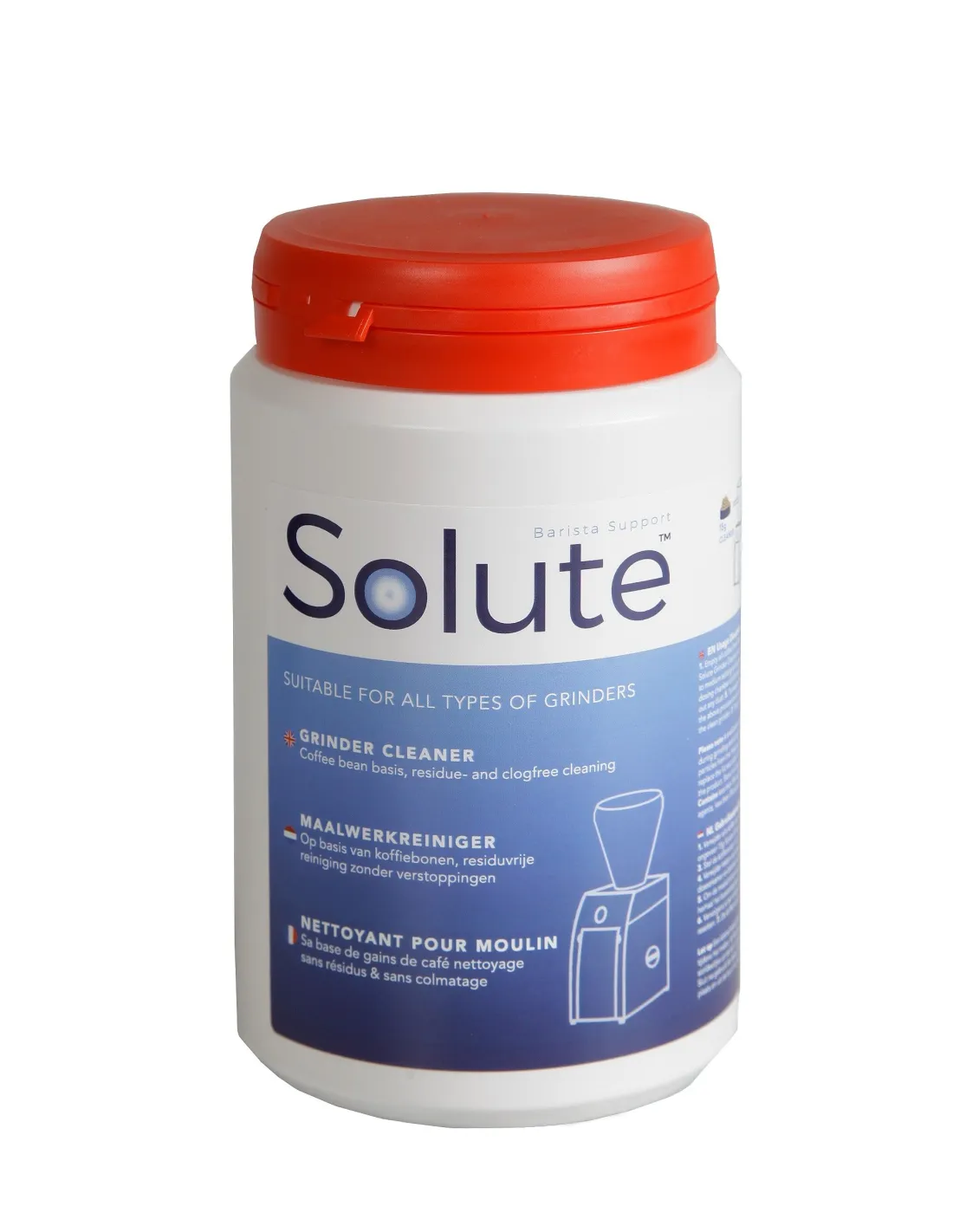 ASolute darálótisztító egy szabadalmaztatott Solute termék, amelyet arra használnak , hogy biztonságosan és alaposan megtisztítsa a darálót a kávéolajoktól. Az őrlő rendszeres tisztításával továbbra is ugyanolyan jó ízű kávét kaphat.